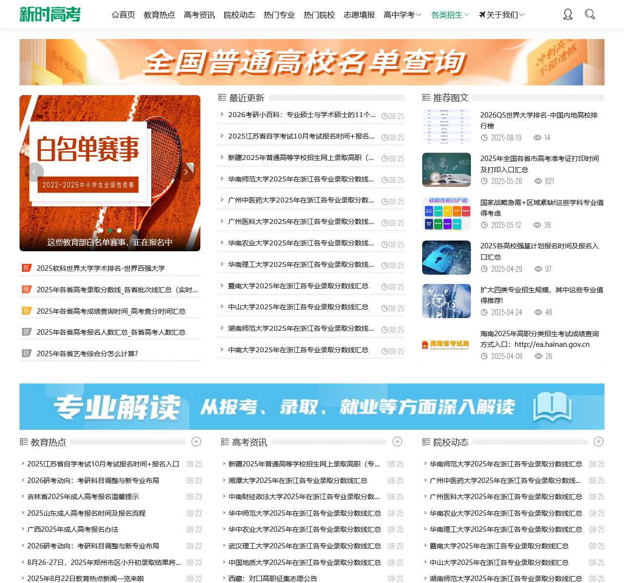 新时高考网权威发布各省、各高校最新高考招生政策、招生信息,同时为考生提供志愿填报政策解读,各校历年录取分数线、专业录取分数线,助力广大考生圆梦理想大学。网站设置艺考、招飞、军校生、公费师范生、免费医学生、强基计划、专项计划等众多栏目,满足各类考生高考信息需求。
