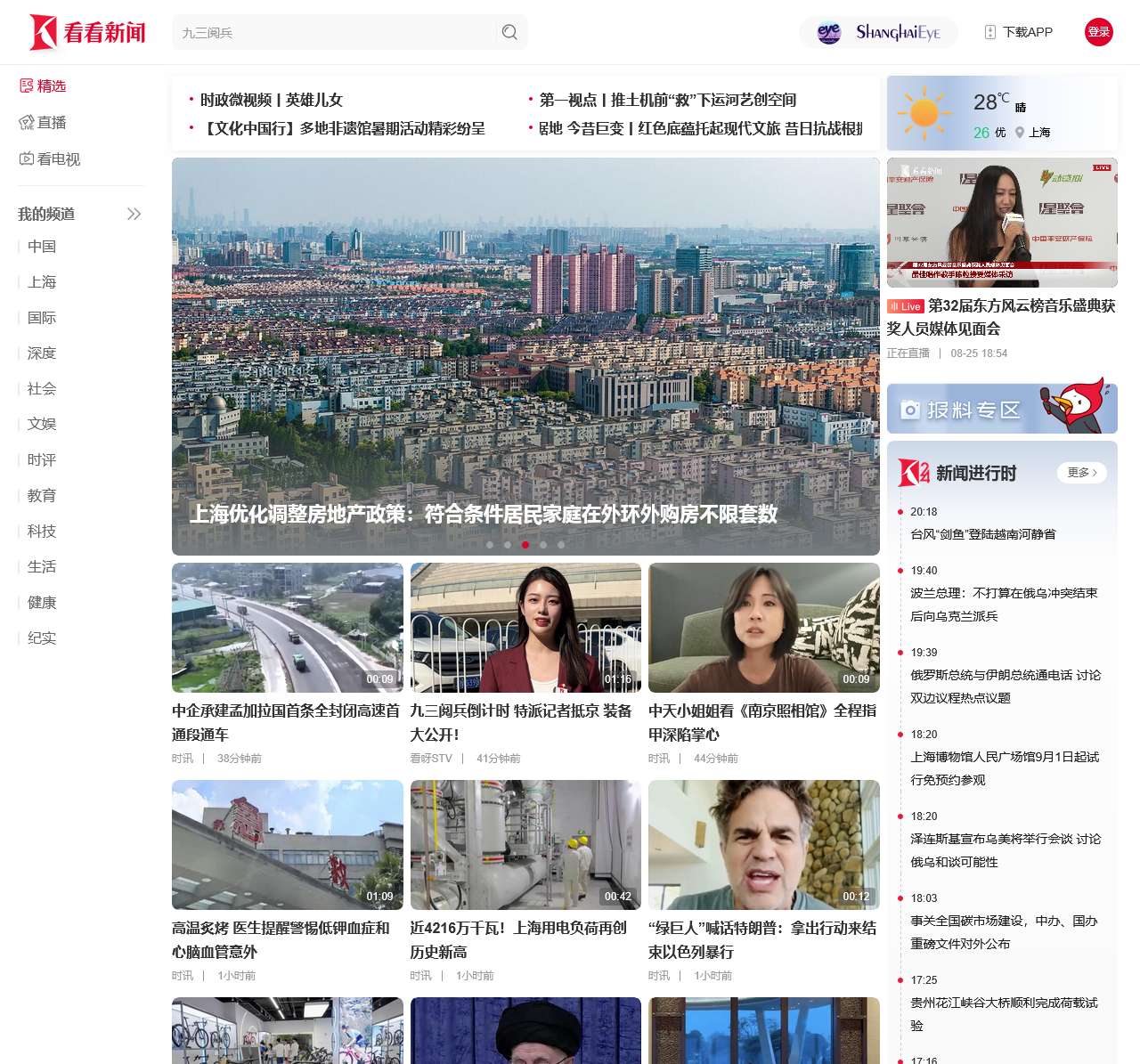 看看新闻,在上海,看世界。看看新闻网是国内专业的视频新闻网站,网站整合了SMG强大的视频新闻资源,提供最新最热的视频新闻在线播放,24小时视频直播,海量视频新闻搜索及视频新闻上传通道。内容包括全球热点事件、突发新闻、本地民生新闻等、设有直播、上海、图片、娱乐等10多个内容频道,包含江湖视频和看看新闻两大APP。看看新闻网,网络视频新闻的第一选择,帮你看见,带你看清。