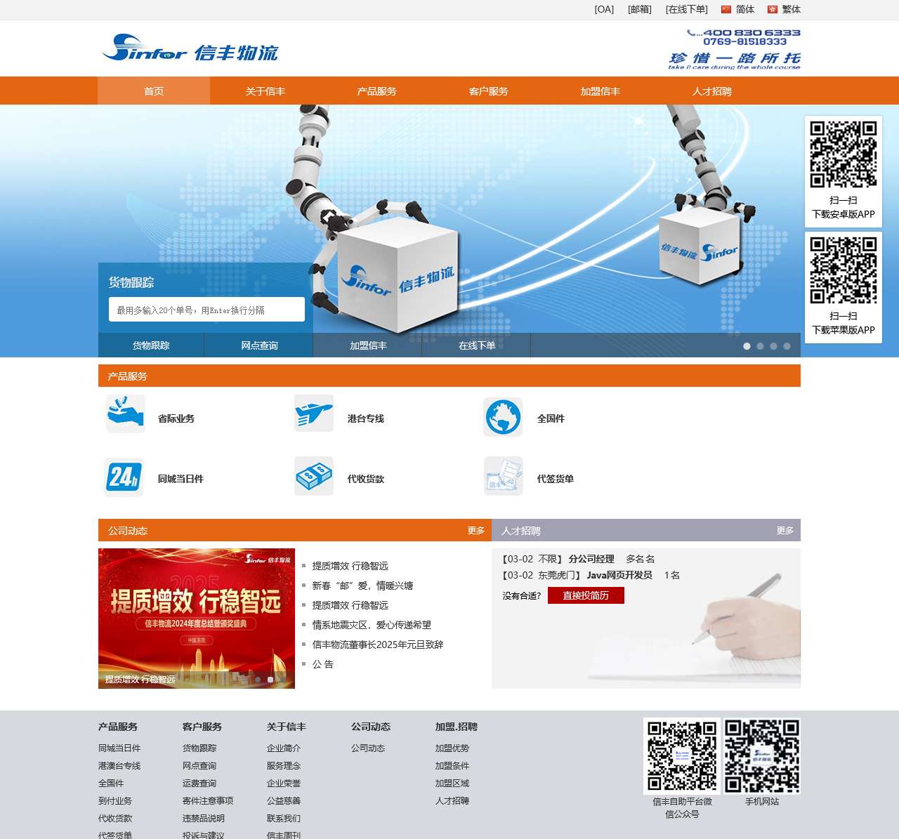 信丰物流有限公司总部位于广东省东莞市是经国家有关部门批准广东省东莞市工商行政管理局注册的现代物流企业。公司实力雄厚、技术先进,主要从事普通快件、直通快件和代收货款等业务,服务范围覆盖全国多个大中城市,形成了以华南为中心,以“珠三角”、“长三角”为重点,辐射全国的物流网络体系,在同行业中处于领先地位。>