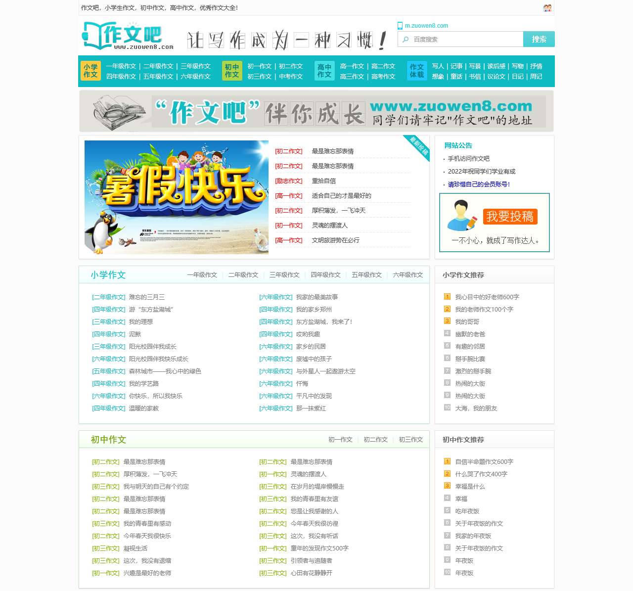 作文吧(www.zuowen8.com),原创作文平台,快乐作文伴你成长!作文吧是一家专业为全国学生提供免费作文辅导资料的网站,拥有专业的师资团队,10多名语文特级教师,专门为全国学生提供作文写作指导咨询服务。作文吧秉承“作文成就未来,分享铸造辉煌”的宗旨,一直无私为全国中小学生提供大量优秀作文范文,免费帮同学们审核作文,评改作文。
