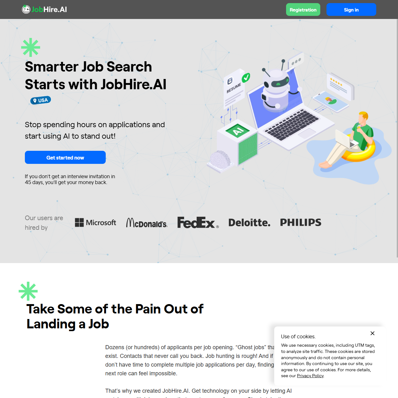 JobHire.AI helps you to auto-apply your job applications to as many companies as you want. Moreover it helps you fine-tune your resume for maximum impact. Land your dream Job with JobHire.AI!
