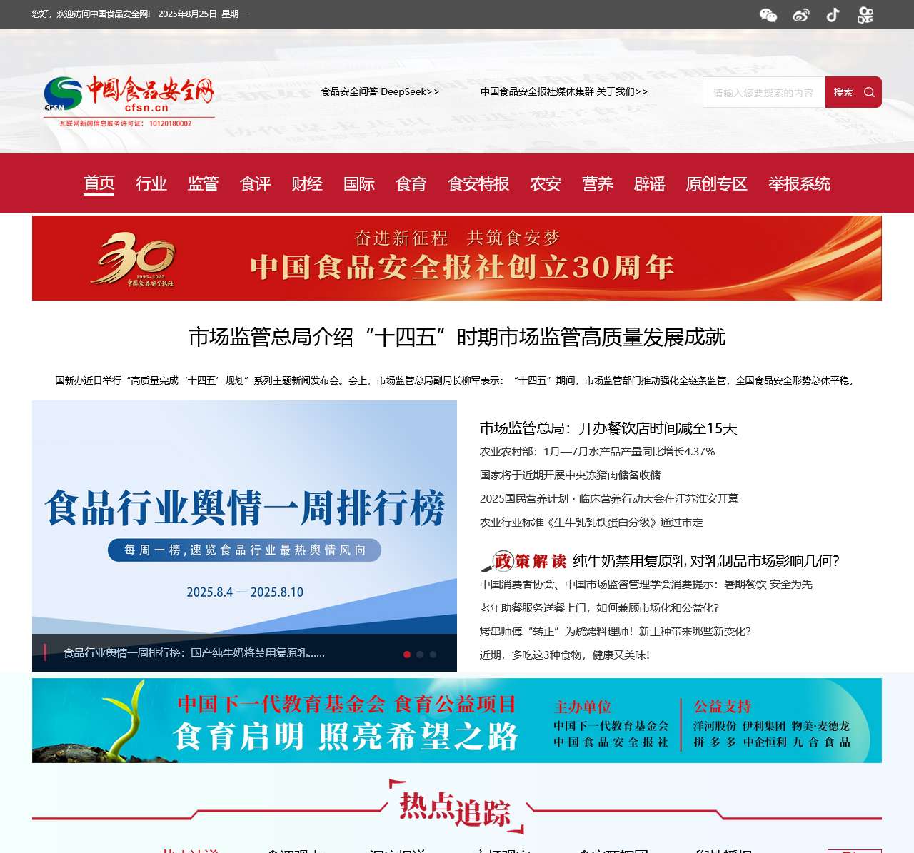 中国食品安全网是我国食品安全领域国家级专业新闻媒体。是当前我国食品安全领域获得互联网新闻信息服务许可的国家级互联网平台。
