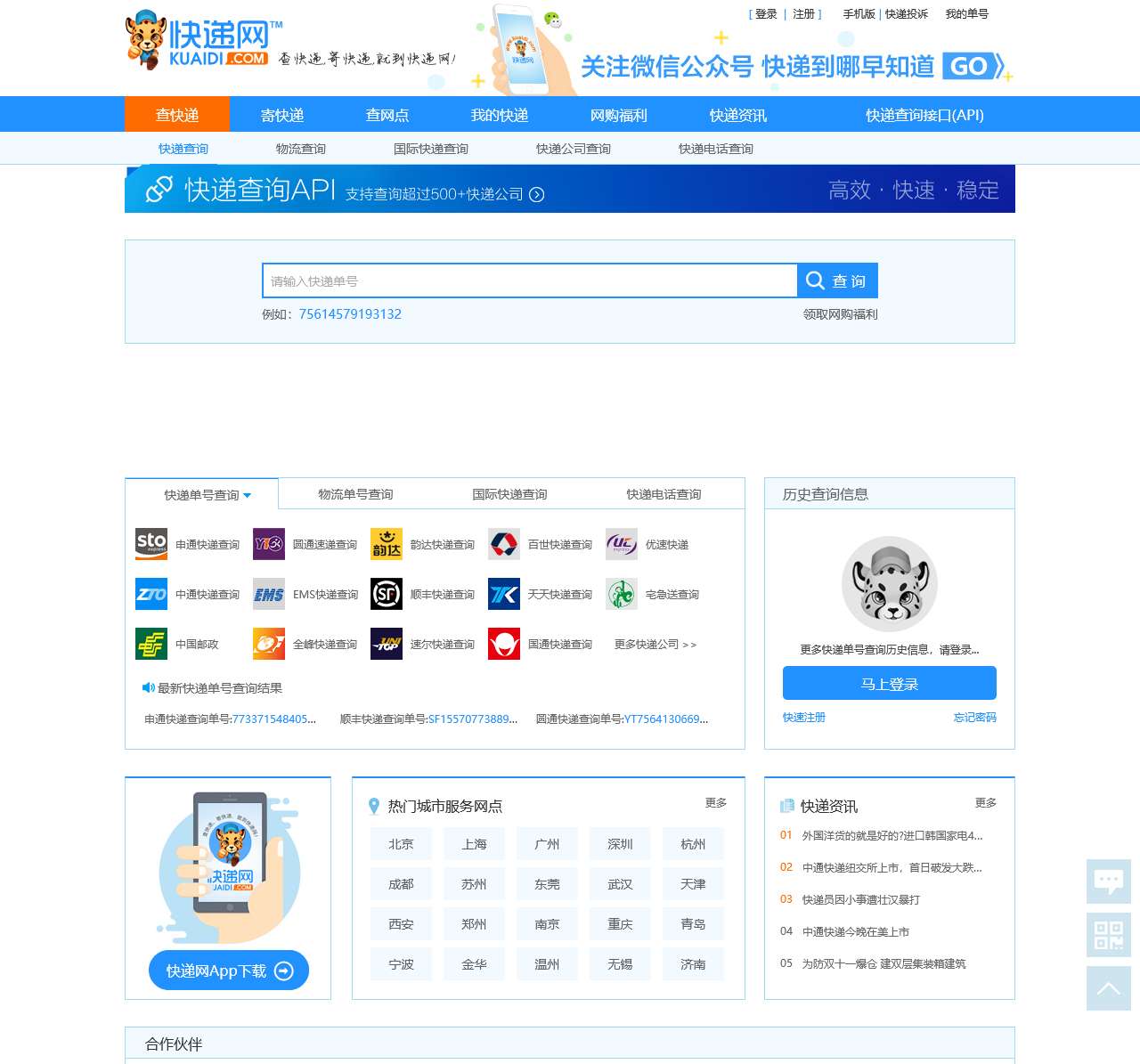 KuaiDi.com快递网提供专业快递查询接口API,一键查询顺丰、申通、圆通、韵达、汇通、天天、德邦、中通、宅急送、快捷、信丰、邮政包裹、挂号信及EMS等常见物流单号!