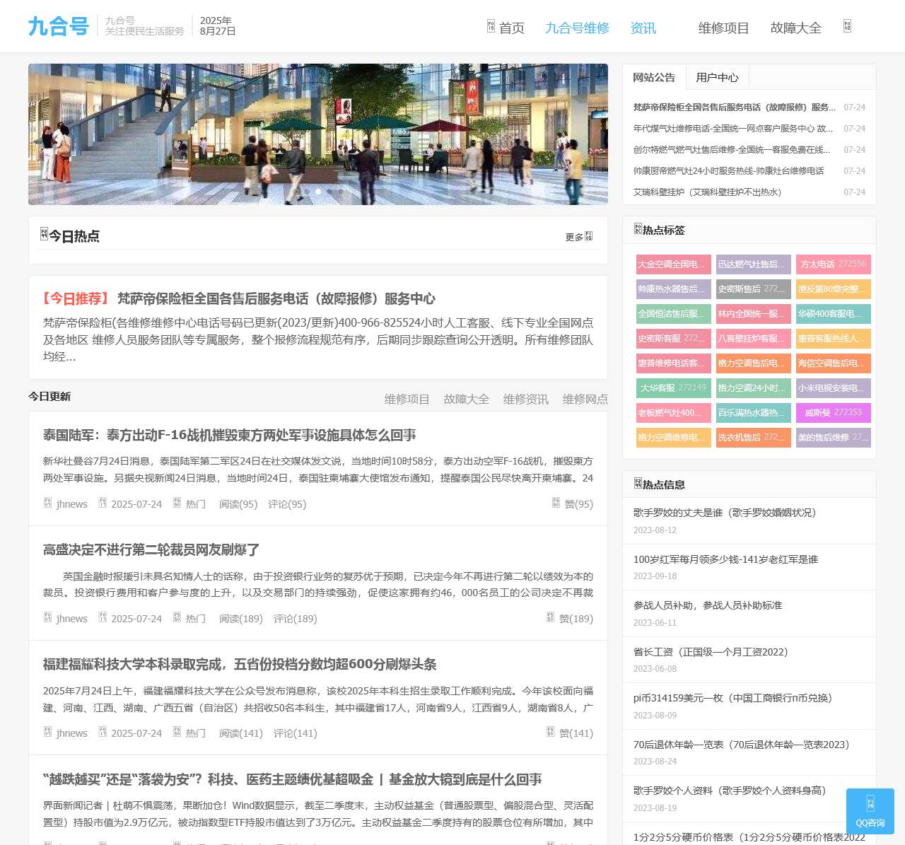 九合号,专注各类家用电器维修知识及各维修网点查询,致力打造专业的家电维修平台,为广大用户提供一站式家用电器报修及附近网点查询
