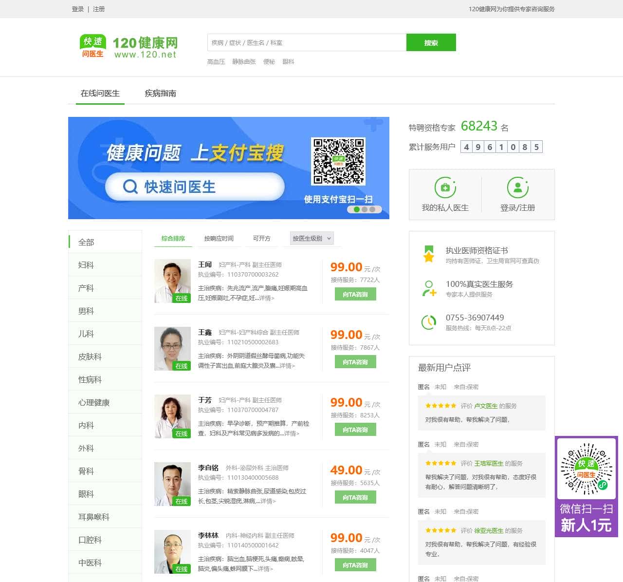 120健康网为用户提供家庭医生,私人医生定制网站,为您提供健康指导,安全用药等健康咨询服务。我们以帮助天下人都拥有自己的家庭医生为目标,使您可以随时随地咨询医生,做到大病早预防,小病不出门