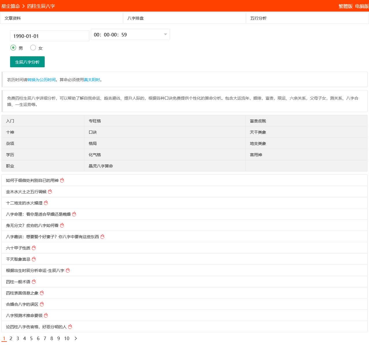 星尘算命免费生辰八字终身运势详细分析,可以帮助了解自我命运、趋吉避凶、开运造命、提升人际的,根据各种口诀免费提供300条个性化的算命分析。