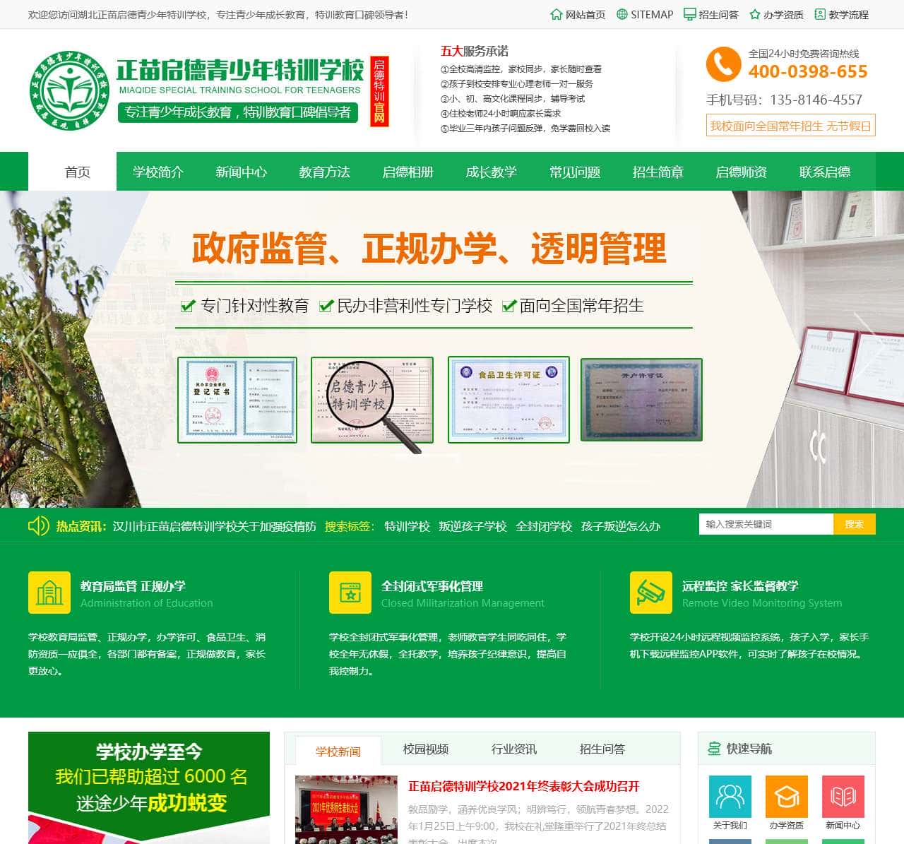 湖北省汉川市正苗启德青少年特训学校一所专业针对青春期叛逆小孩进行行为习惯调整、感恩励志教育、心理辅导、文化辅导于一体的正规特殊教育学校,教育局审批,非营利性民办专门学校,面向湖南、广东、广西、江西、安徽、浙江、福建、江苏、山东、河南、河北等地常年招生,签订合同。
