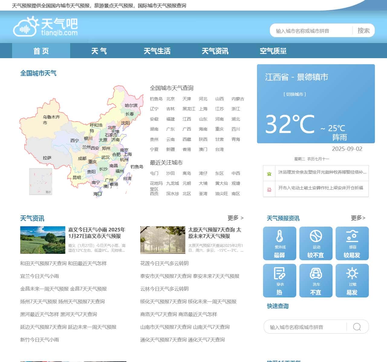 天气吧提供全国各地天气预报,未来七天天气预报,及时发布最新气象资讯等全面的气象服务,还提供全国各地旅游景点天气预报情况、气象常识。