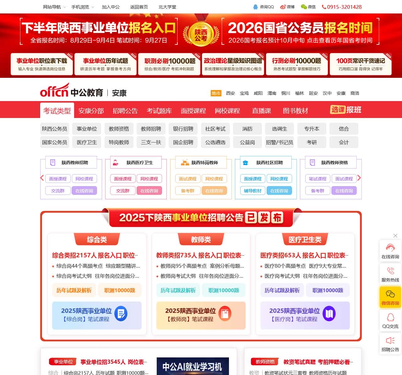 【安康中公-专业公务员培训机构】提供安康市公务员考试,安康教师招聘和事业单位招聘考试公告,报名时间入口,职位表下载,笔面试成绩查询,试题及笔试面试培训辅导。