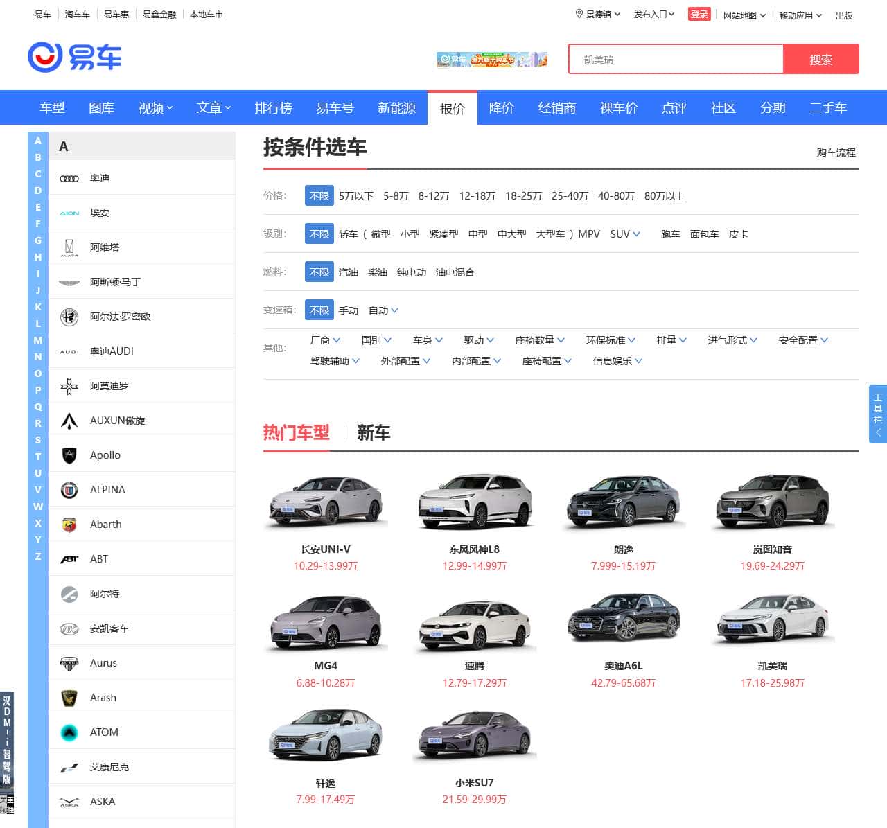 汽车报价:在线询价、底价买车!提供申请贷款、以旧换新服务,汽车报价频道提供全国近万家经销商的每日实时汽车报价,汽车价格,新车报价,新车价格等。