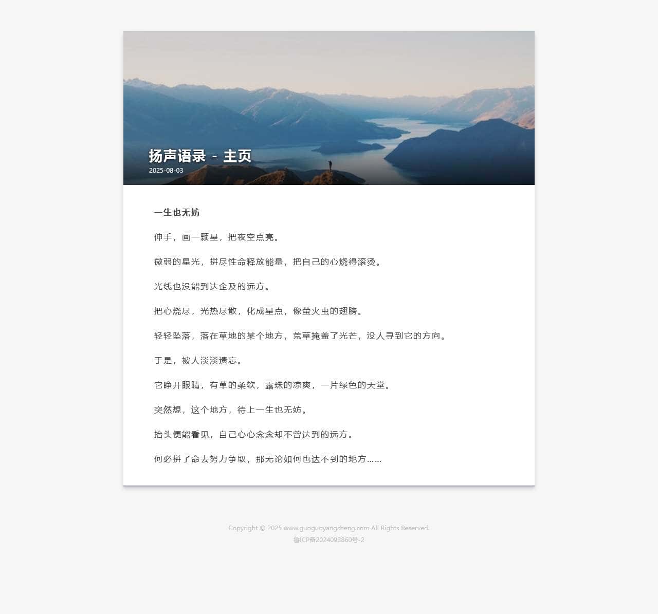 本站盾灵导航提供的扬声阅读网数据都来源于网络,不保证外部链接的准确性和完整性,同时,对于该外部链接的指向,不由盾灵导航实际控制,在2025年9月21日 上午4:32收录时,该网页上的内容,都属于合法合规,后期网页的内容如出现违规,请联系本站网站管理员进行举报,我们将进行删除,盾灵导航不承担任何责任。