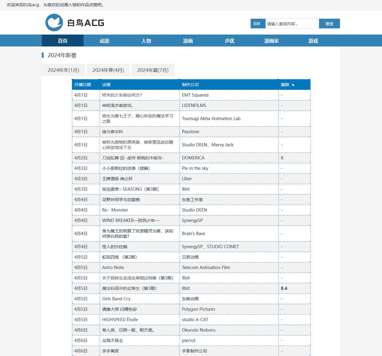 白鸟ACG:本站收录优质好看的新番动漫、热门漫画、游戏等作品。关联声优(配音),动漫音乐和文化。欢迎光临白鸟动漫。