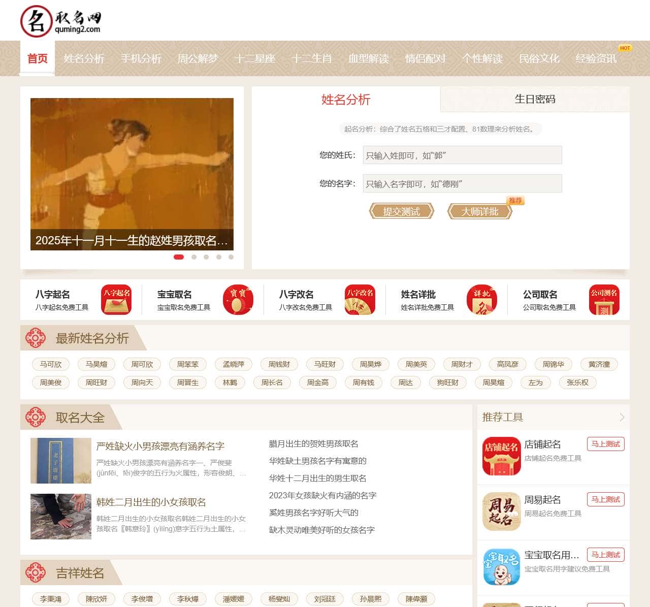 取名网提供姓姓名分析,姓名测试,手机号查询,十二星座,生肖分析,年份生肖查询,血型解读,手机分析等多种服务