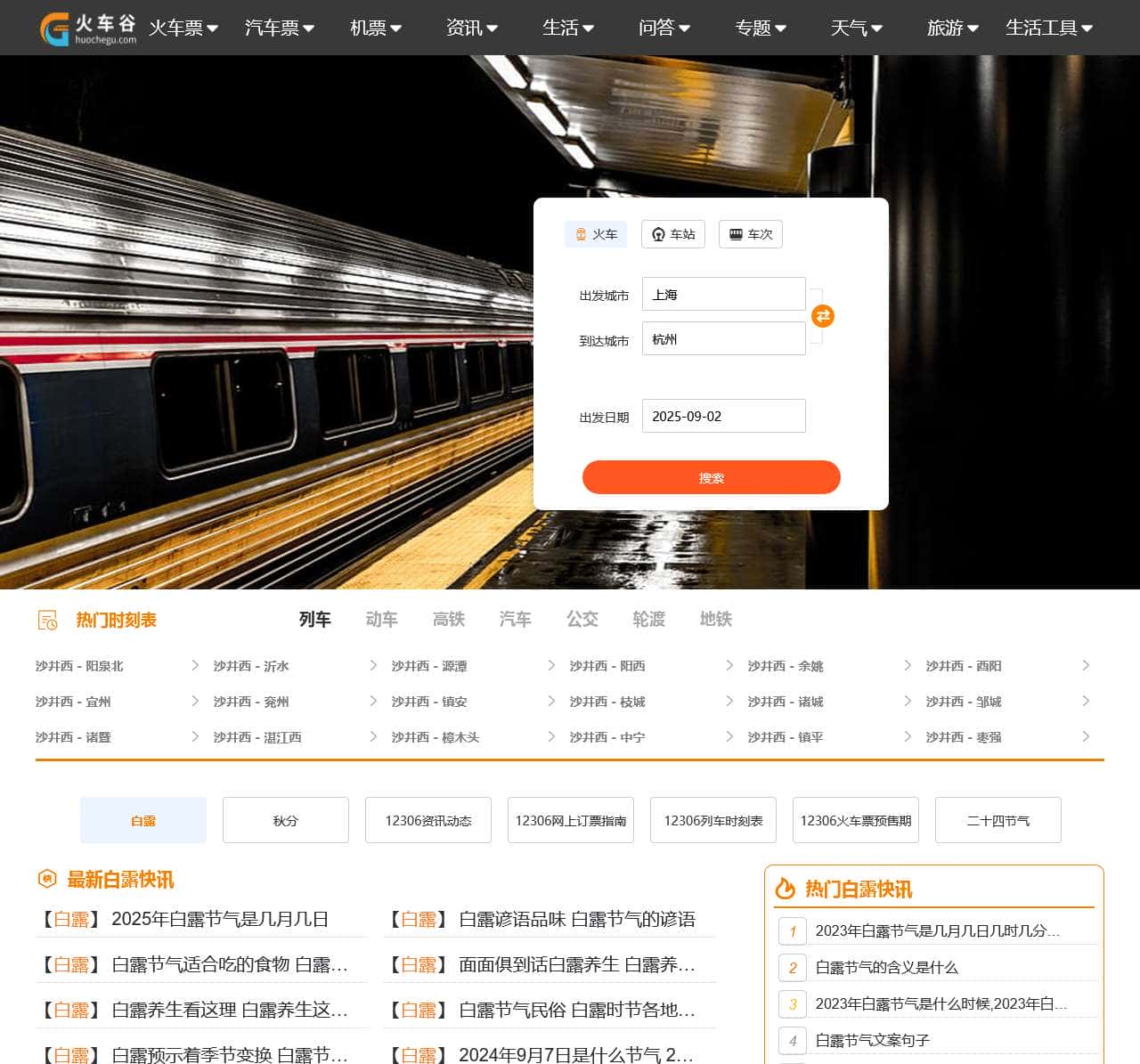 火车谷网为您提供各大城市火车时刻表查询、火车票价查询、火车票预订、火车票预订电话等信息,还有汽车时刻表查询、公交查询、天气预报查询等,为您的出行带来便利。