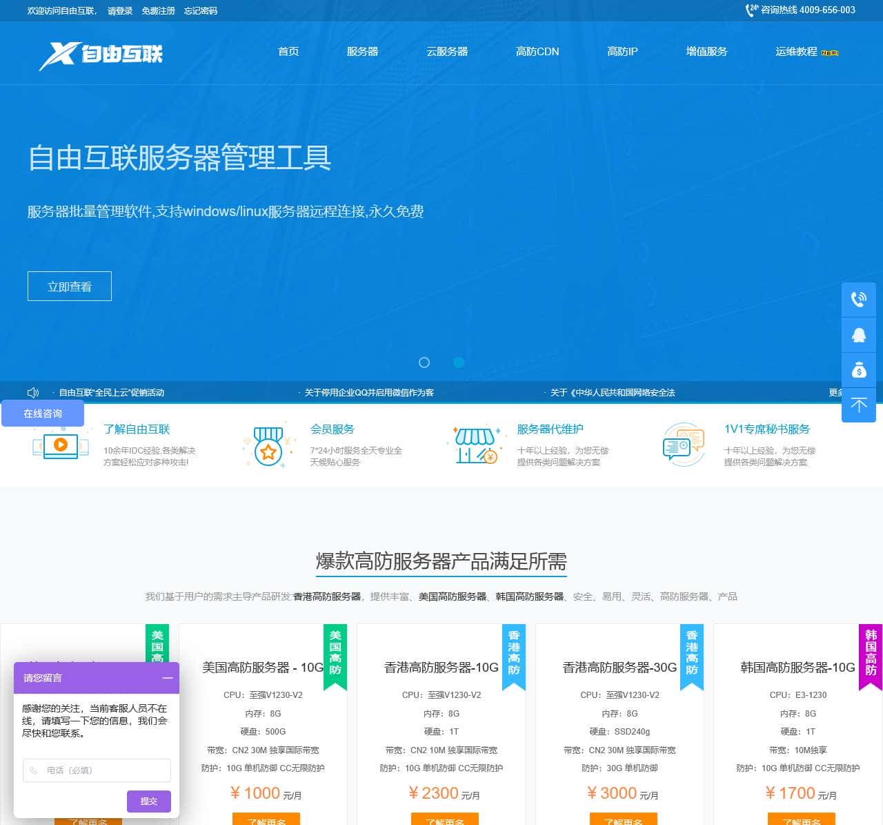 自由互联从事高防服务器租用八年,为广大用户提供高防服务器,有美国高防服务器租用,香港高防服务器,韩国高防服务器等服务器.自由互联专注于国外服务器租用十余年,丰富的海外服务器资源助力您拓展海外业务!