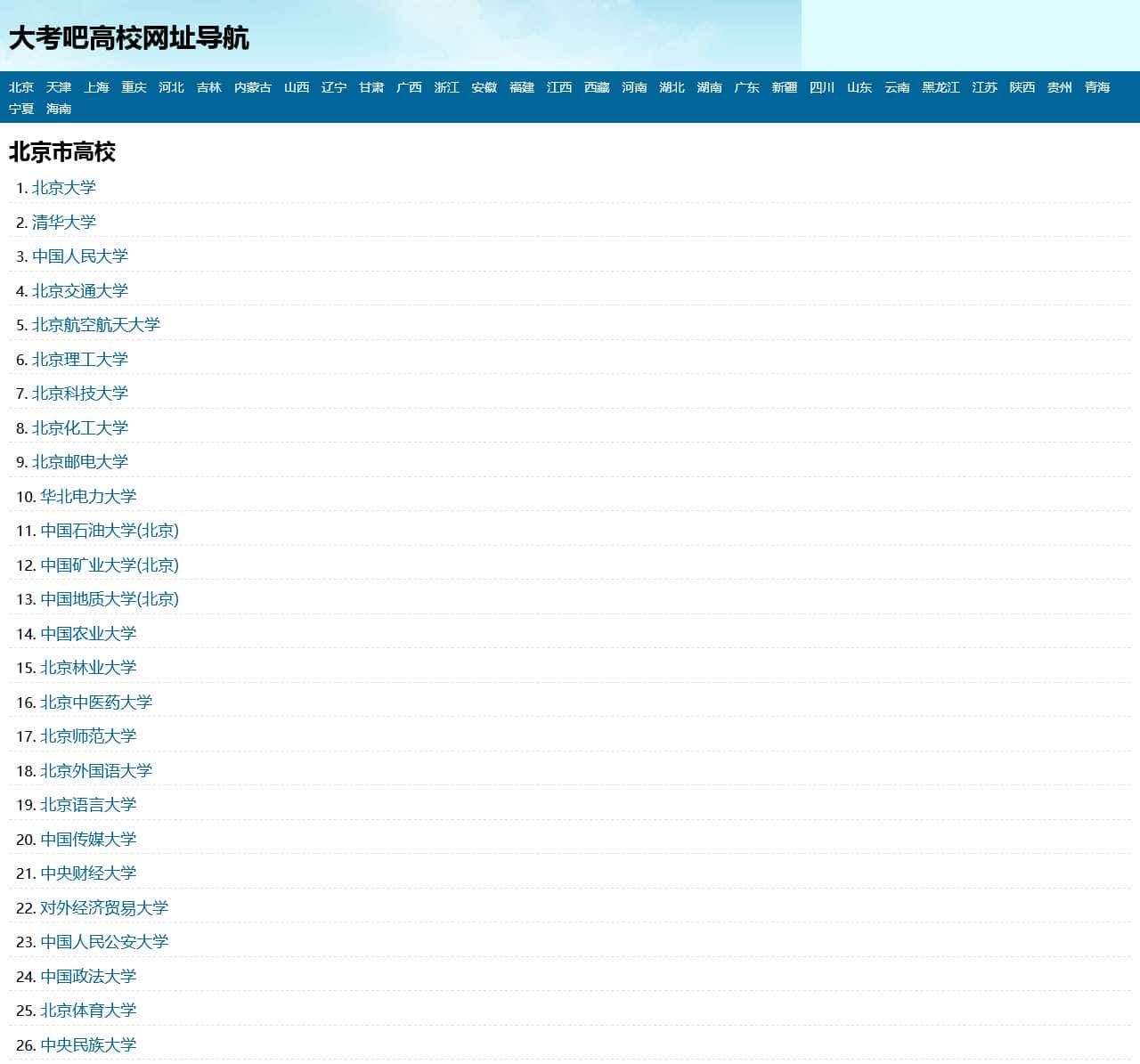 2000多所中国高校网址大全,大学网址导航手机版。包含各高校官网,教务处网址,二级学院网站,招生网以及研究生学院等高校各部门网址。