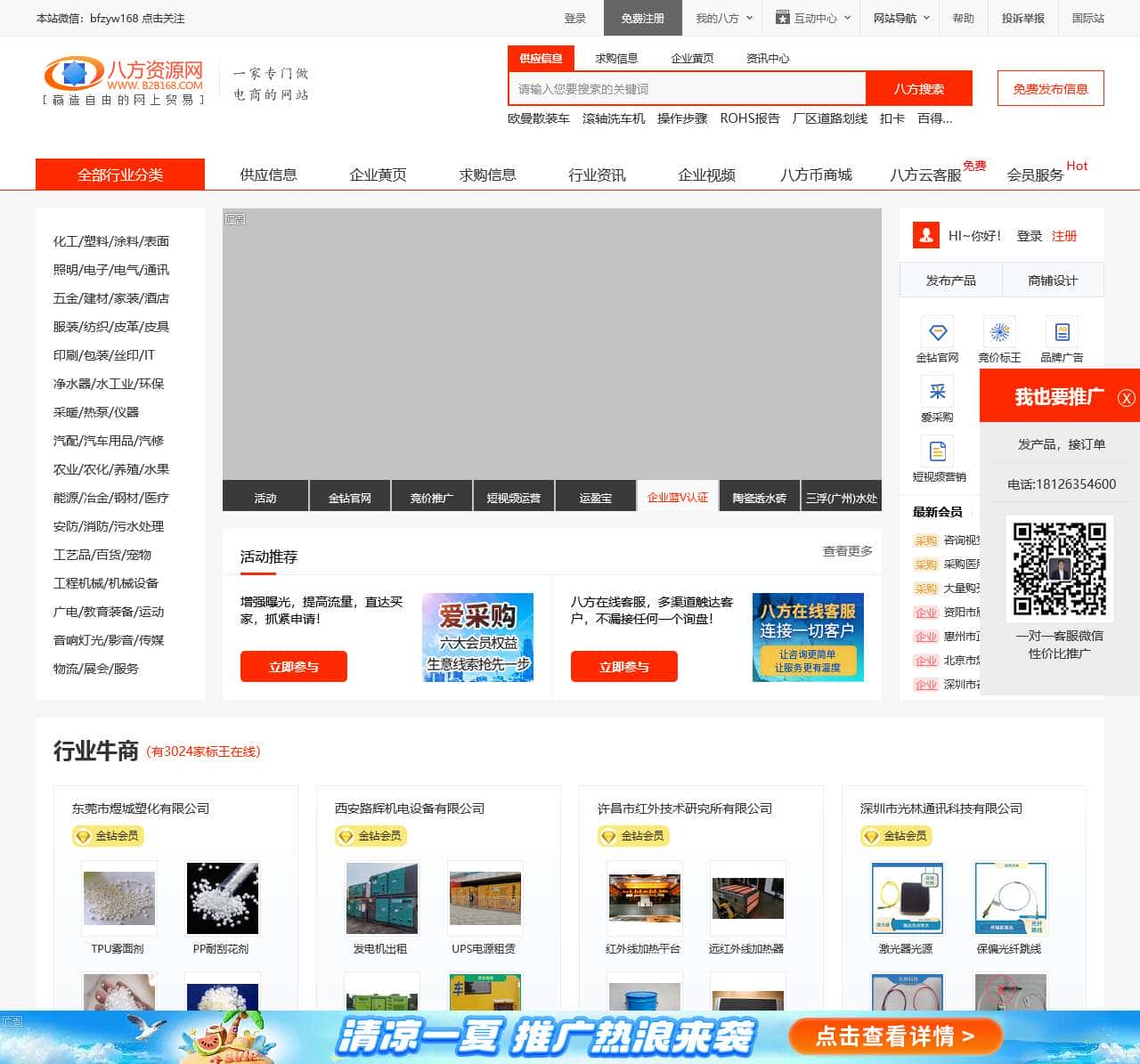 八方资源网(www.b2b168.com)倡导自由的网上贸易,为全球220个国家和地区的商人提供在线贸易服务。融供应商机、求购信息、企业目录于一体,正在成为全球商人销售产品、开展网上贸易及网络推广的一家电子商务网站
