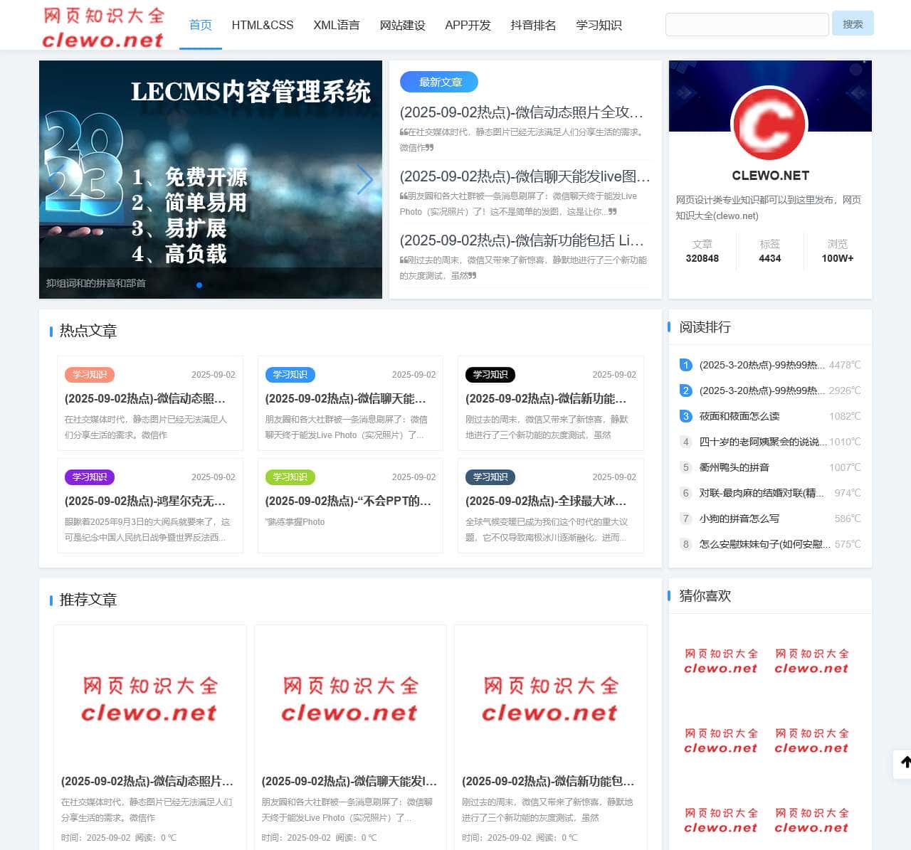 网页设计类专业知识都可以到这里发布,网页知识大全(clewo.net)