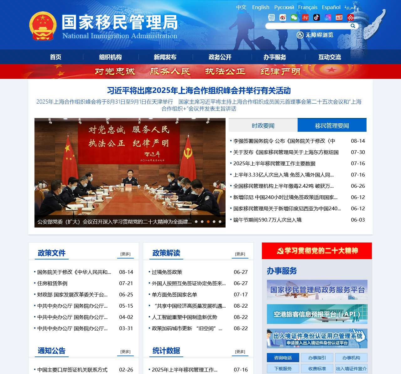 国家移民管理局,开设“组织机构、新闻发布、政务公开、办事服务、互动交流”栏目,及时发布相关信息,详情请进入访问。
