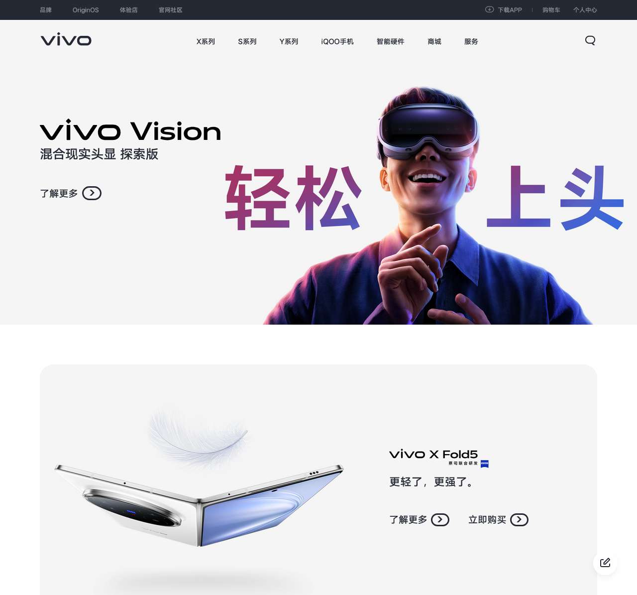 手机领域的国际化品牌,vivo官网提供手机资讯、售前咨询、在线购买、售后服务等功能;vivo当季明星机型有X300系列、S30系列、X Fold5、iQOO 15、vivo Pad5 Pro等。