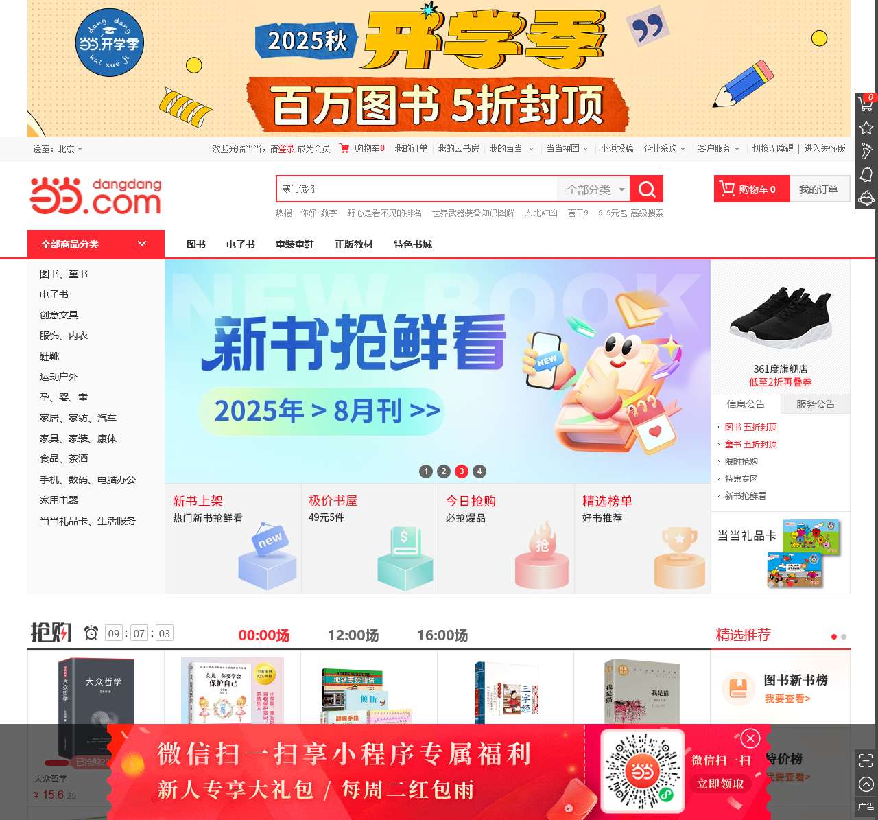 全球领先的综合性网上购物中心。超过100万种商品在线热销!图书、童书、绘本、中小学教辅、文学小说、音像、母婴、家居、服装、鞋包等几十大类,正版保证,低至2折(自营图书满49元免运费。当当网一贯秉承提升顾客体验的承诺,自助退换货便捷又放心)