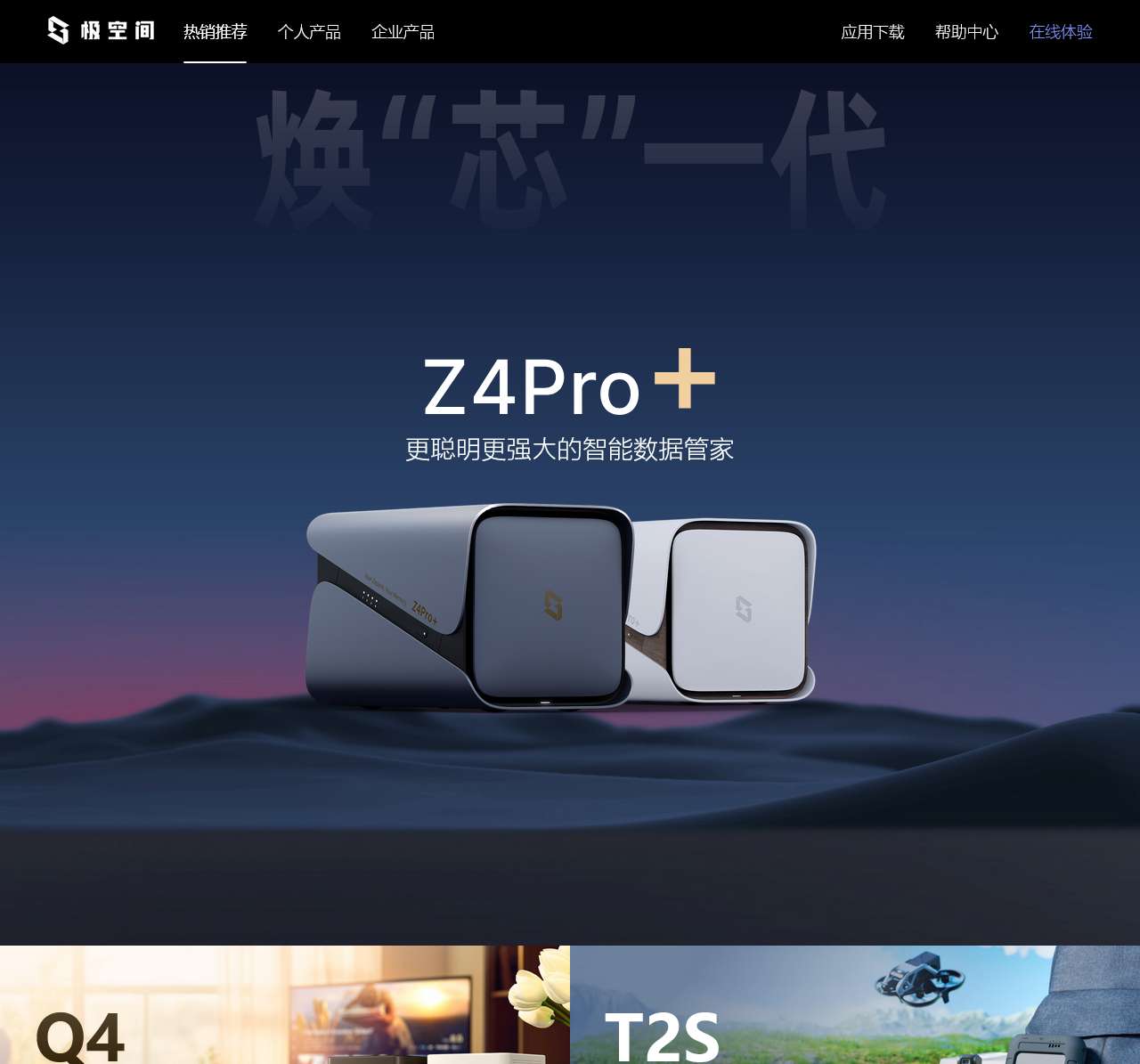 极空间是一款NAS设备,极空间Z2是天顶星公司推出的一款面向个人和家庭的私有云产品。服务涵盖相册备份、文件备份、资源下载、文件管理、影视剧下载、极影视影视削刮器、音乐播放、视频播放、网盘备份等。极空间是移动硬盘、磁盘阵列等其他存储设备的替代者。