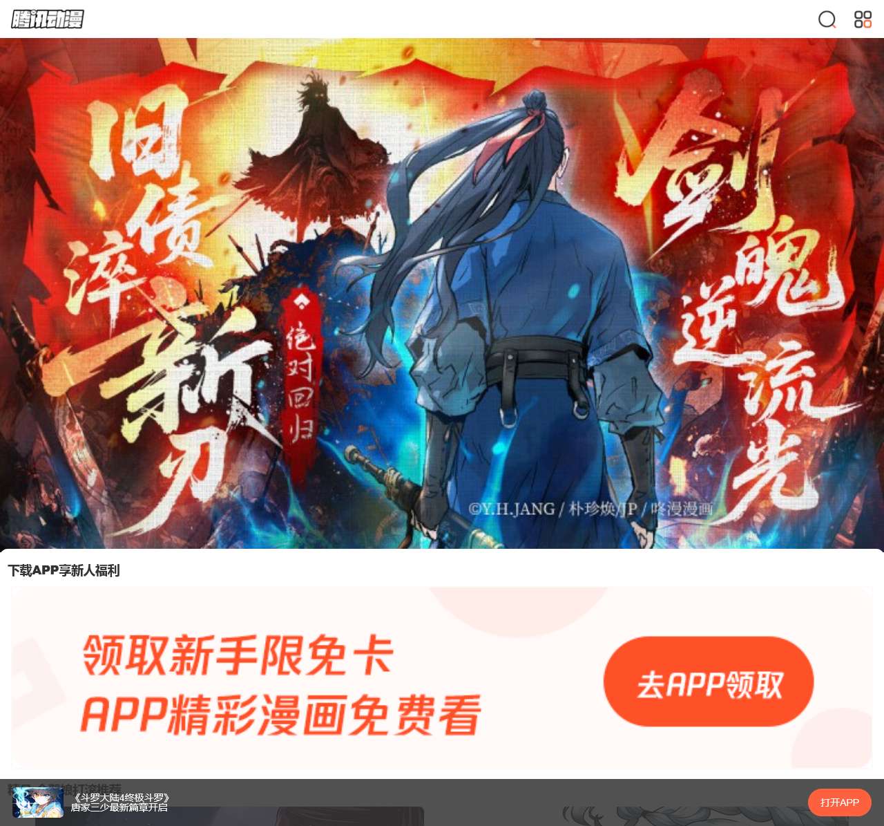 腾讯动漫是国内领先的原创正版漫画阅读平台,拥有斗罗大陆、斗破苍穹、一人之下、妖神记、大王饶命、我是大神仙等大批优秀的国产漫画。腾讯动漫为大家提供最快最新在线漫画,最新海贼王漫画,火影忍者漫画,等热门日漫,国漫,下拉式漫画免费全集观看,喜欢的朋友记得常来哦