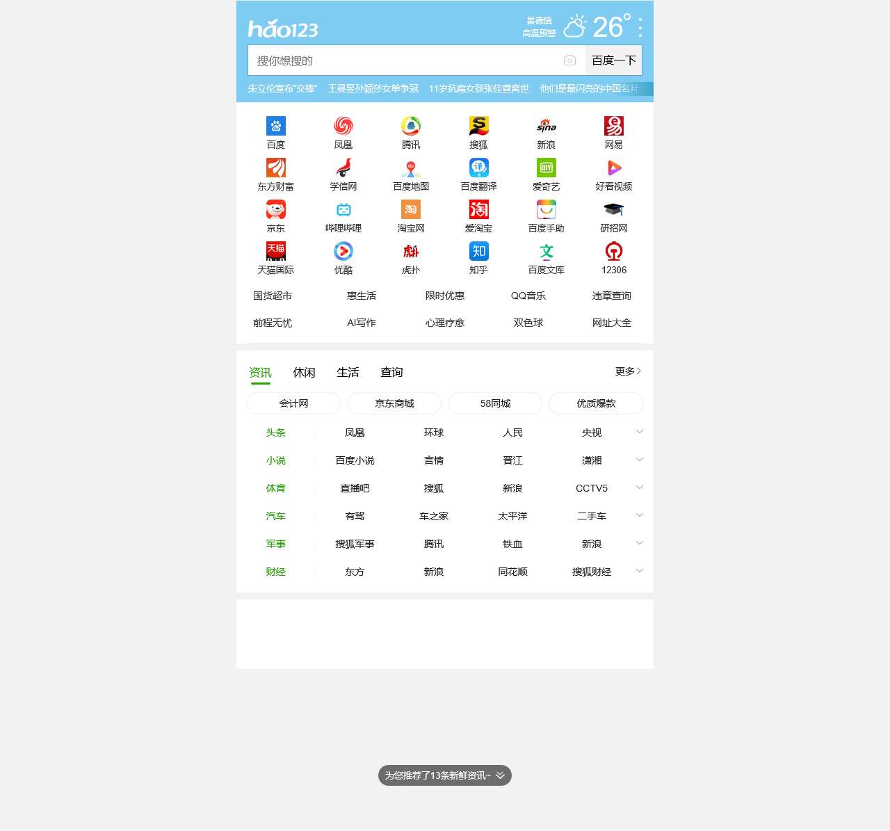 hao123是汇集全网优质网址及资源的中文上网导航。及时收录影视、音乐、小说、游戏等分类的网址和内容,让您的网络生活更简单精彩。上网,从hao123开始。