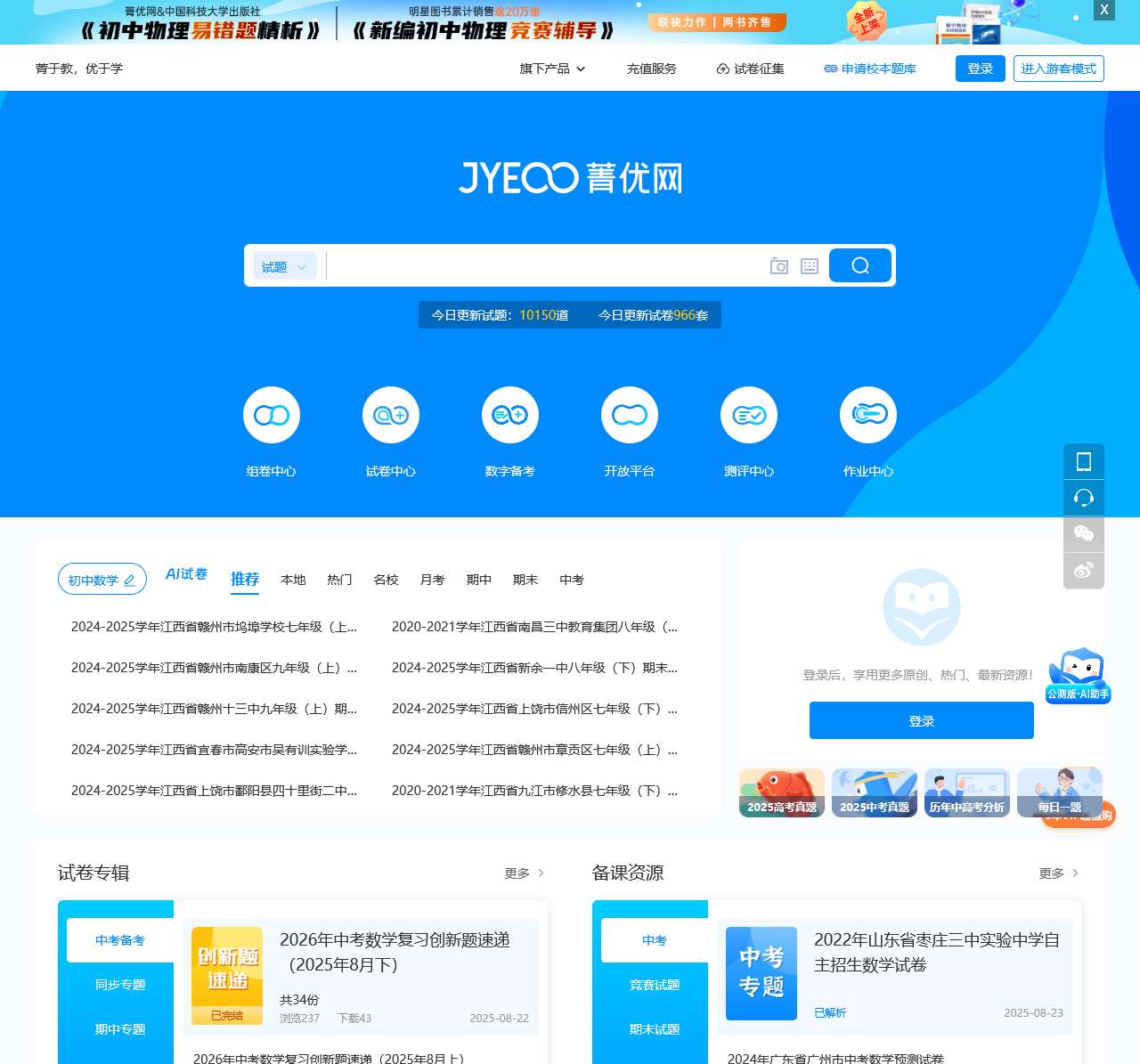 菁优网拥有2500万原创全解全析题库,涵盖全学科学段,提供各省市中小学各版本教材的试题试卷下载,多种方式组卷,还有校本题库、测评、精品资源、在线作业、伴印等产品