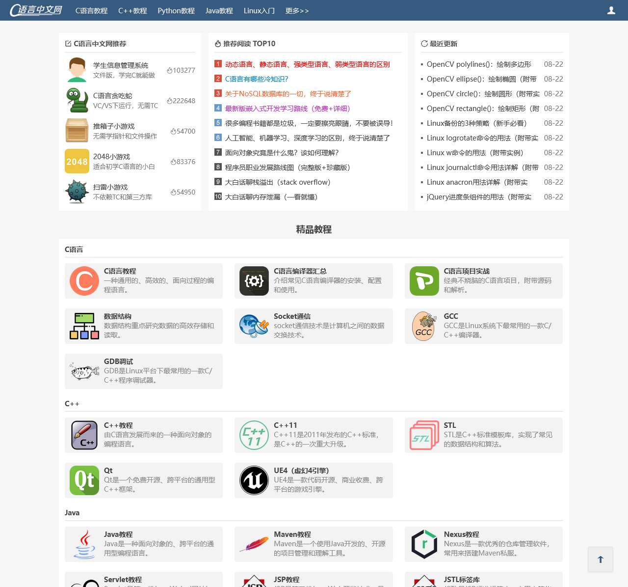 C语言中文网是中国领先的C语言程序设计专业网站,提供C语言入门经典教程、C语言编译器、C语言函数手册,C语言编程技巧,C语言考试试题等,是学习、自学C语言程序设计的好帮手。
