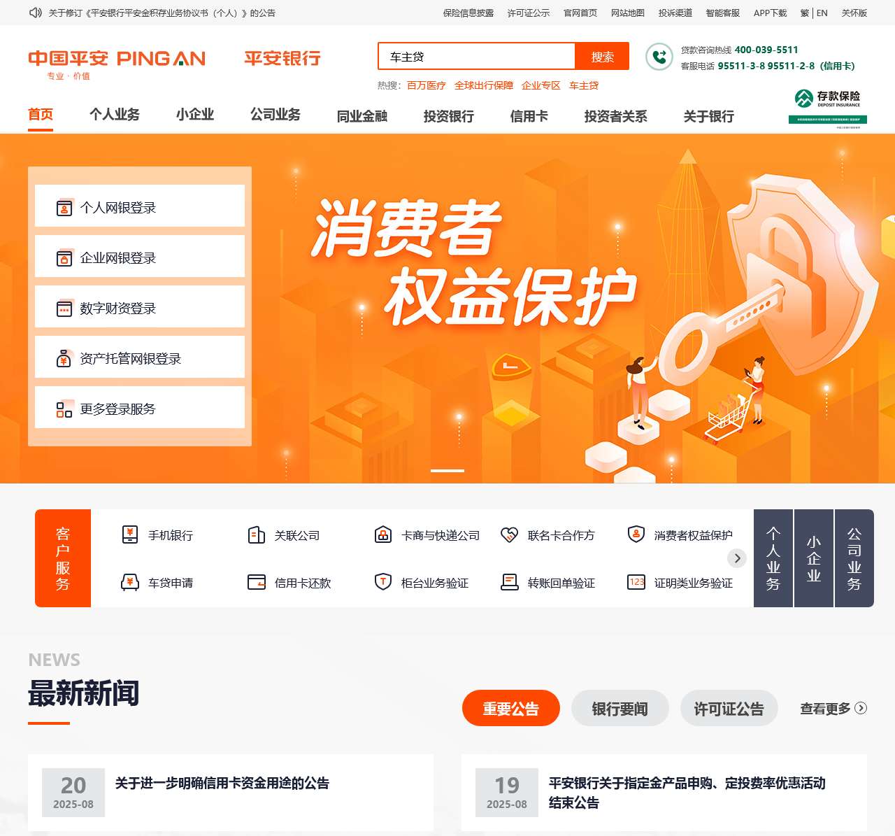 平安银行致力于为客户提供全方位的银行服务。您可以了解投资理财、贷款、个人通知存款、银行缴费、公司业务等平安银行业务,可以方便快捷的登录网上银行,办理转账汇款、账务查询等业务。