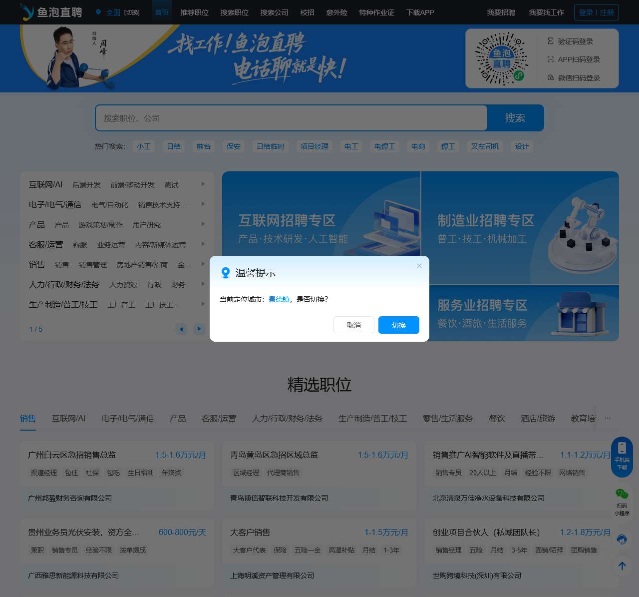 鱼泡直聘网是专业的招聘求职平台,为企业提供优质人才,为求职者提供海量高薪职位,覆盖建筑装修、工厂制造、物流运输、生活服务、机械司机、餐饮酒旅等行业,找工作上鱼泡直聘网,老板直招!