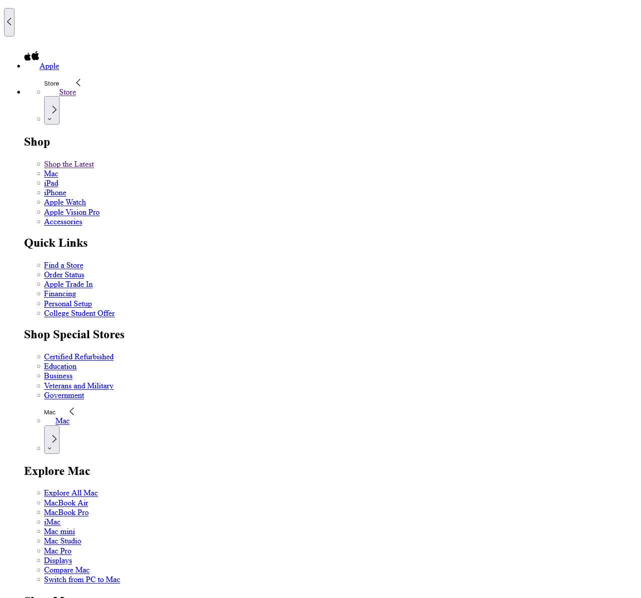 ◊ Apple Card Monthly Installments (ACMI) is a 0% APR payment option that is only available if you select it at checkout in the U.S. for eligible products purchased at Apple Store locations, apple.com (Opens in a new window), the Apple Store app, or by calling 1-800-MY-APPLE, and is subject to credit approval and credit limit. See here (Opens in a new window) for more information about eligible products. Existing customers: See your Customer Agreement for your variable APR. As of October 1, 2025, the variable APR on new Apple Card accounts ranges from 17.99% to 28.24%. You must elect to use ACMI at checkout. If you buy an ACMI-eligible product with a one-time payment on Apple Card at checkout, that purchase is subject to your Apple Card’s variable APR, not the ACMI 0% APR. Taxes and shipping on items purchased using ACMI are subject to your Apple Card’s variable APR, not the ACMI 0% APR. In order to buy an iPhone with ACMI, you must select one of the following carriers (prepaid carrier plans are not supported): AT&T, Boost Mobile, T-Mobile, or Verizon. An iPhone purchased with ACMI is always unlocked, so you can switch carriers at any time, subject to your carrier’s terms. ACMI is not available for purchases made at the following special storefronts or when using these discounts in-store at Apple: Apple Employee Purchase Plan; participating corporate Employee Purchase Programs; Apple at Work for small businesses; Government and Veterans and Military Purchase Programs; or on refurbished devices. The last month’s payment for each product will be the product’s purchase price, less all other payments at the monthly payment amount. ACMI is subject to change at any time for any reason, including but not limited to installment term lengths and eligible products. See the Apple Card Customer Agreement (Opens in a new window) for more information about ACMI.