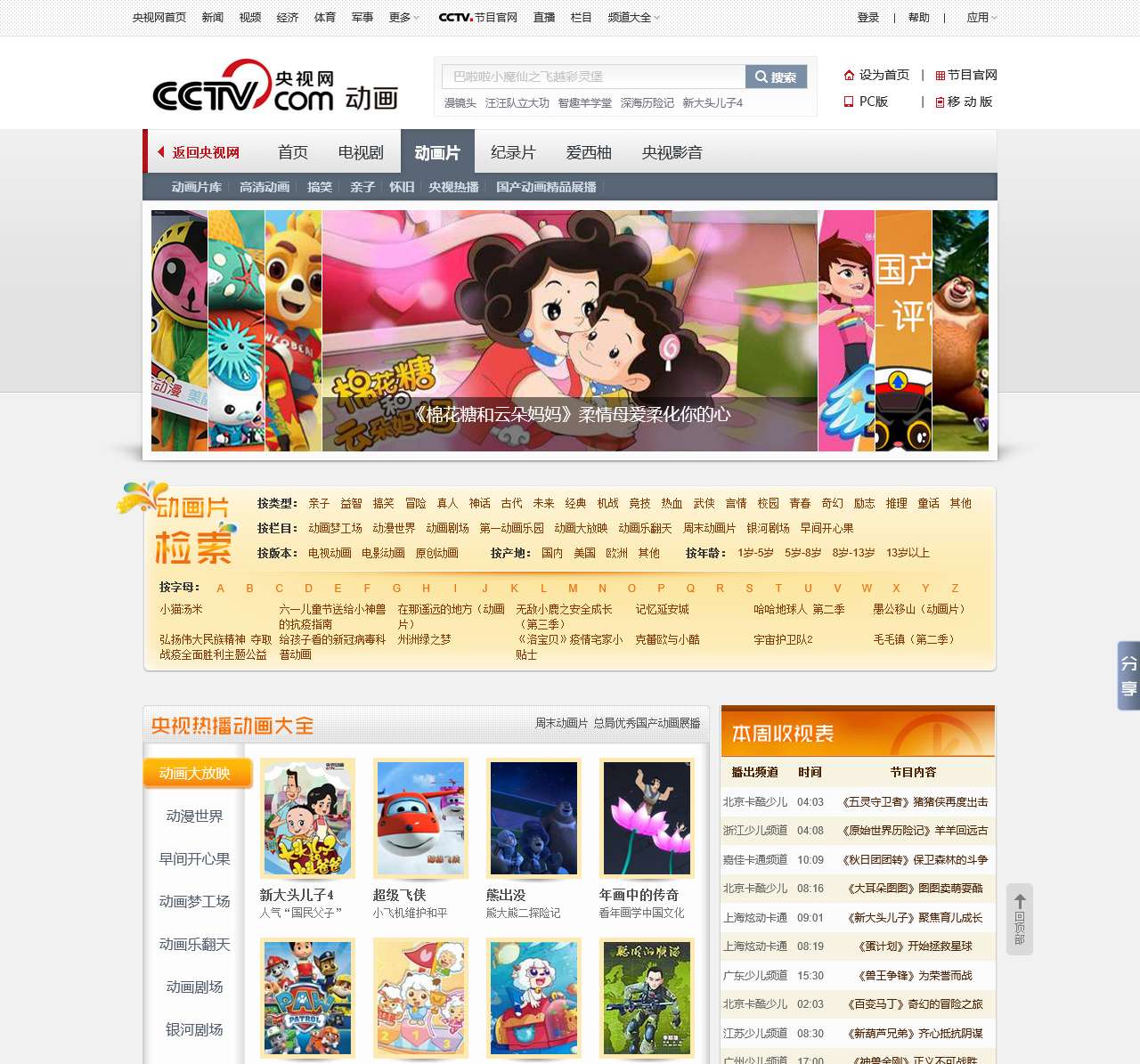 央视网(cctv.com)动画片台提供正版高清好看动画片,免费在线视频点播,动画解读社会主义核心价值观,2017动画暑期狂欢派对, 巴啦啦小魔仙之飞越彩灵堡,新大头儿子和小头爸爸第四季,喜羊羊与灰太狼之漫镜头,汪汪队立大功,熊出没之奇幻空间,少年师爷9,鹿精灵,熊熊乐园,新葫芦兄弟,新大头儿子和小头爸爸等海量动画片。