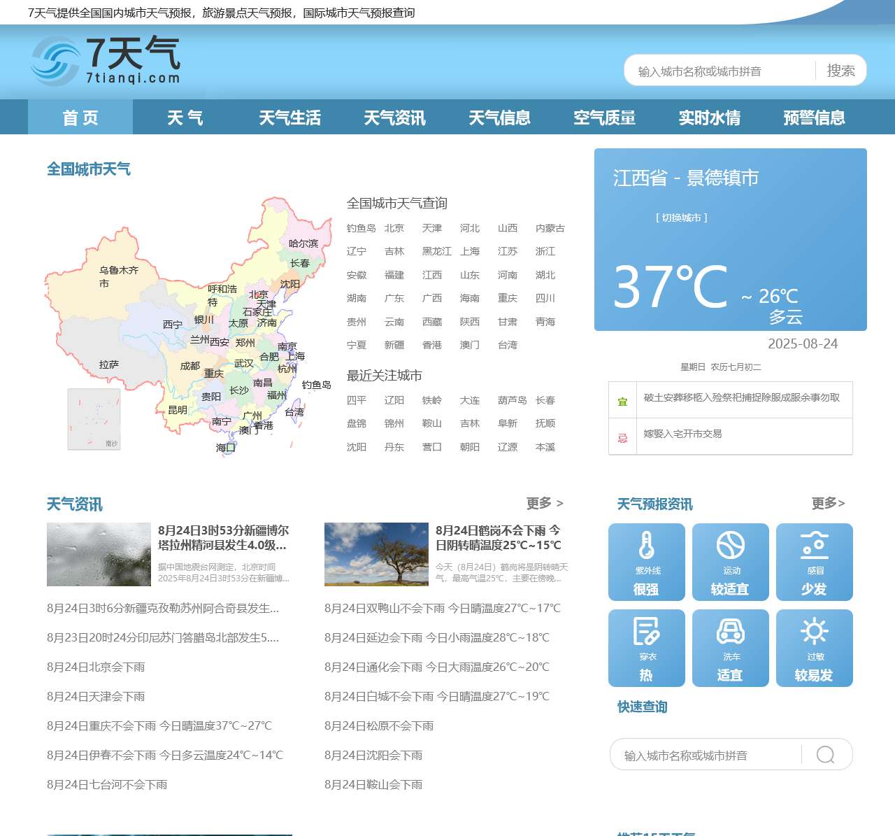 7天气网提供全国各地天气预报,未来七天天气预报,及时发布最新气象资讯等全面的气象服务,还提供全国各地旅游景点天气预报情况、气象常识。