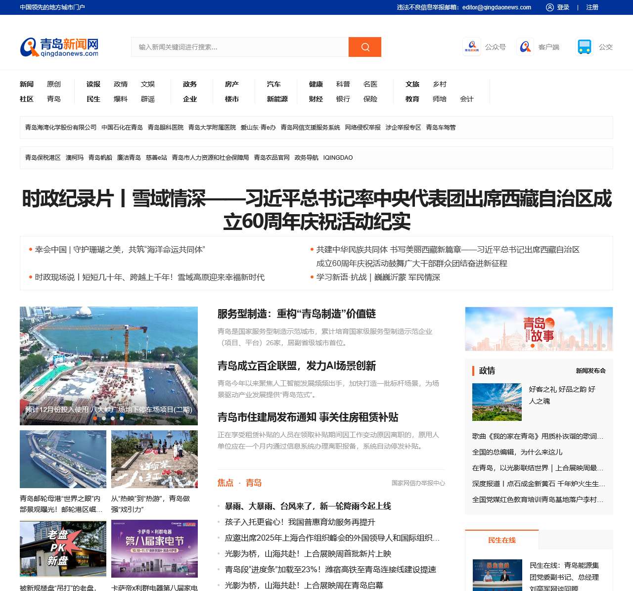青岛地方互联网门户。青岛新闻网拥有在网民中具有高度影响力和号召力的门户论坛社区青青岛。网站下设青岛新闻、民生在线、微博,青岛房产,青岛汽车,青岛美食,青岛旅游等频道,是青岛互联网用户获取信息的媒体平台。