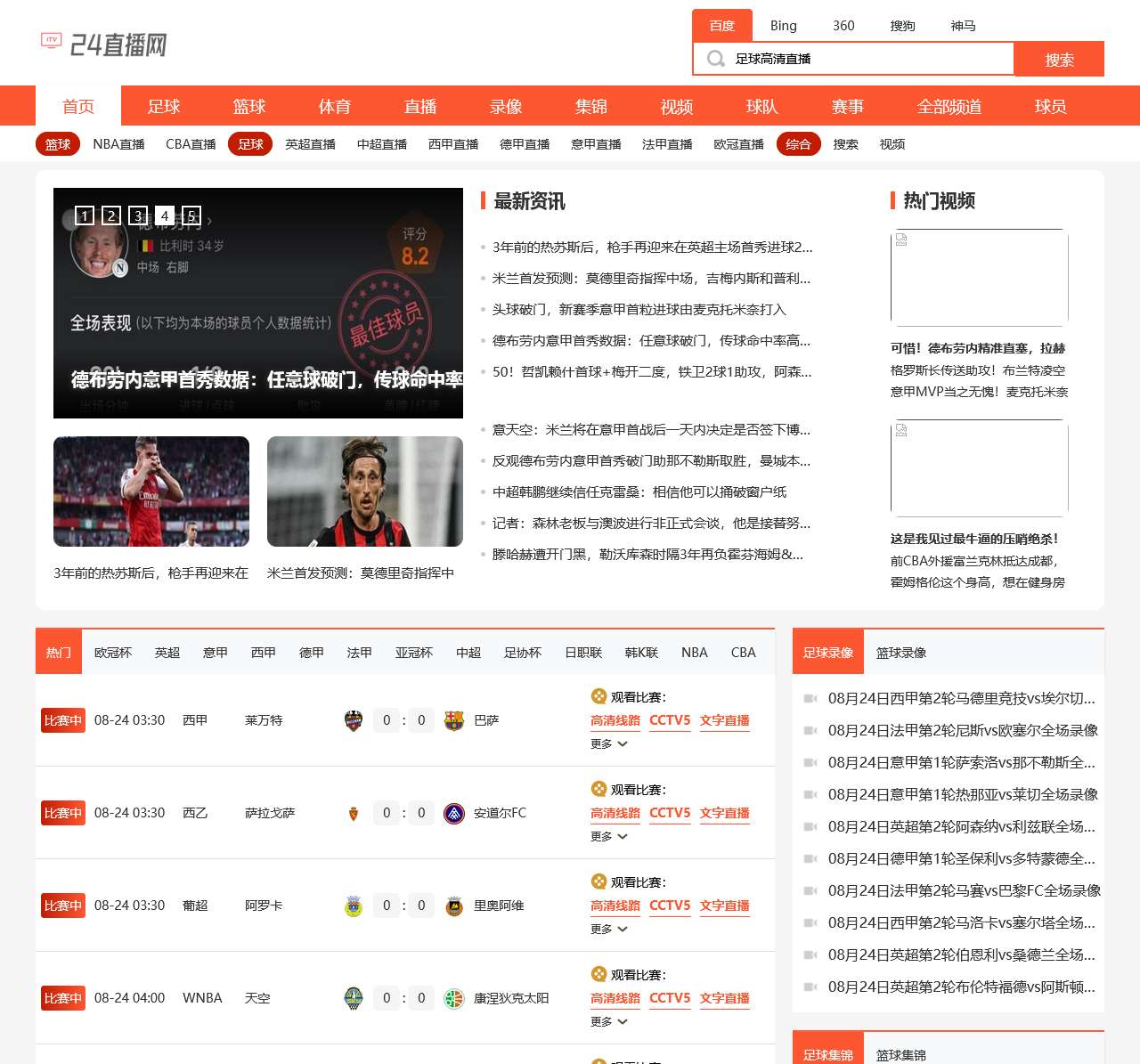 24直播网是一个专业的足球直播网站,主要提供高清足球直播,NBA直播,英超直播,体育吧以最全最高清信号让您畅享五大联赛,打造最好体育直播吧。