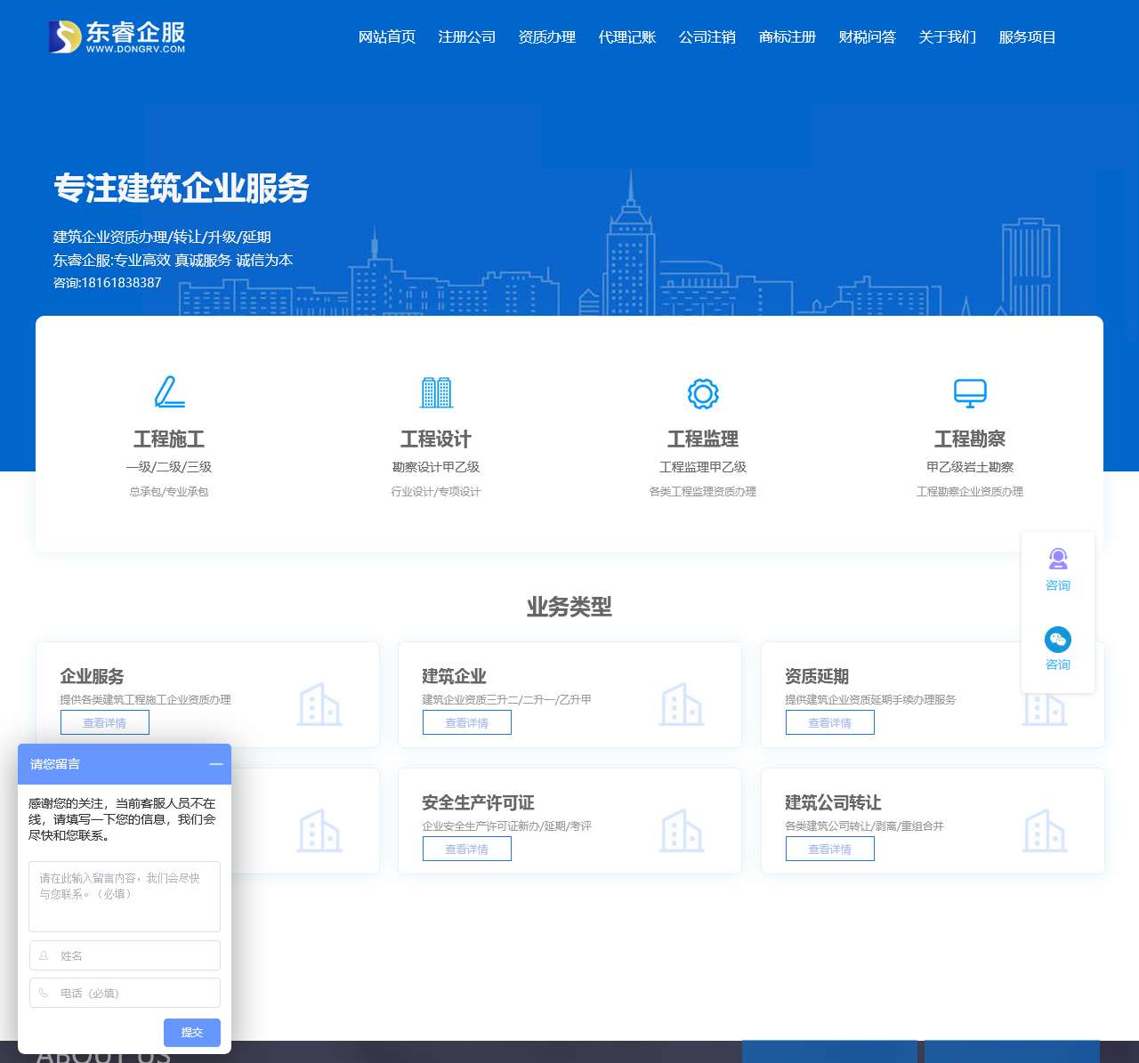 东睿企业服务,专业提供建筑企业资质升级,建筑工程施工企业资质办理/工程勘察设计企业资质代办理,建筑资质代办理甲乙级、一二级、设计资质、监理资质、岩土勘察资质、城乡规划、工程咨询资质新办、公司转让、资质升级、延期等资质服务;诚信高效的服务于中小微企业,流程化标准化专业化服务体制,创业路上东睿企业服务公司与您相伴力求为广大客户提供专业的企业服务。