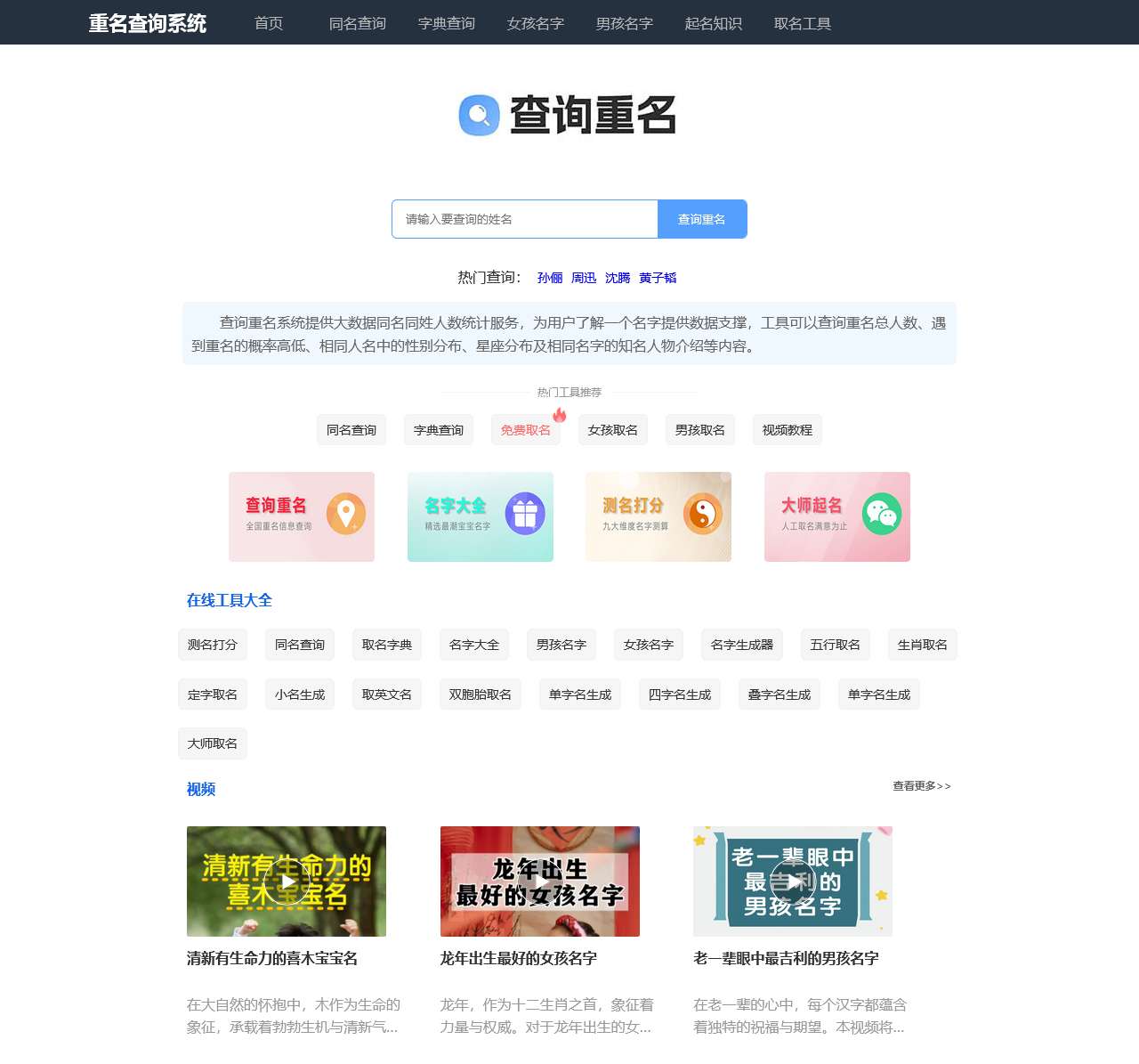 重名查询网提供专业全国姓名查询服务,包含全国同名同姓人数查询、全国重名查询、名字姓名分布查询、名字寓意查询等功能,通过大数据结合AI,为您提供一站式姓名解析。