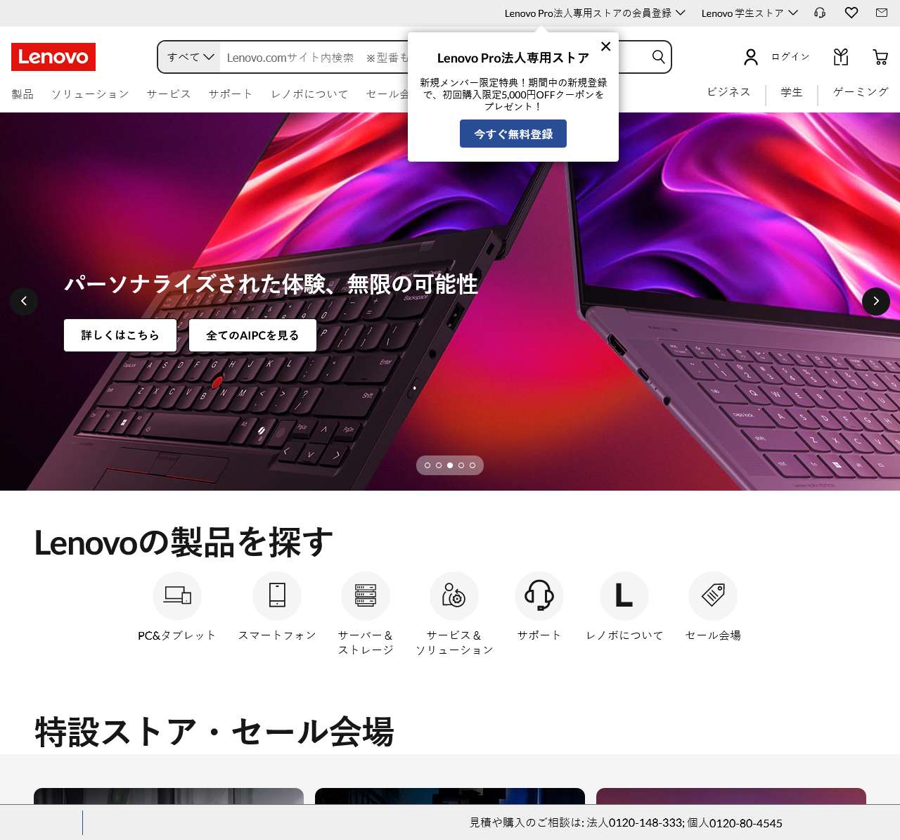 最適なノートPC、タブレット、デスクトップや最高のサーバーの購入はこちら✔お客様の用途に合わせたカスタマイズや ☎ 0120-80-4545でのご相談も承っています✔レノボ・ジャパン公式サイト