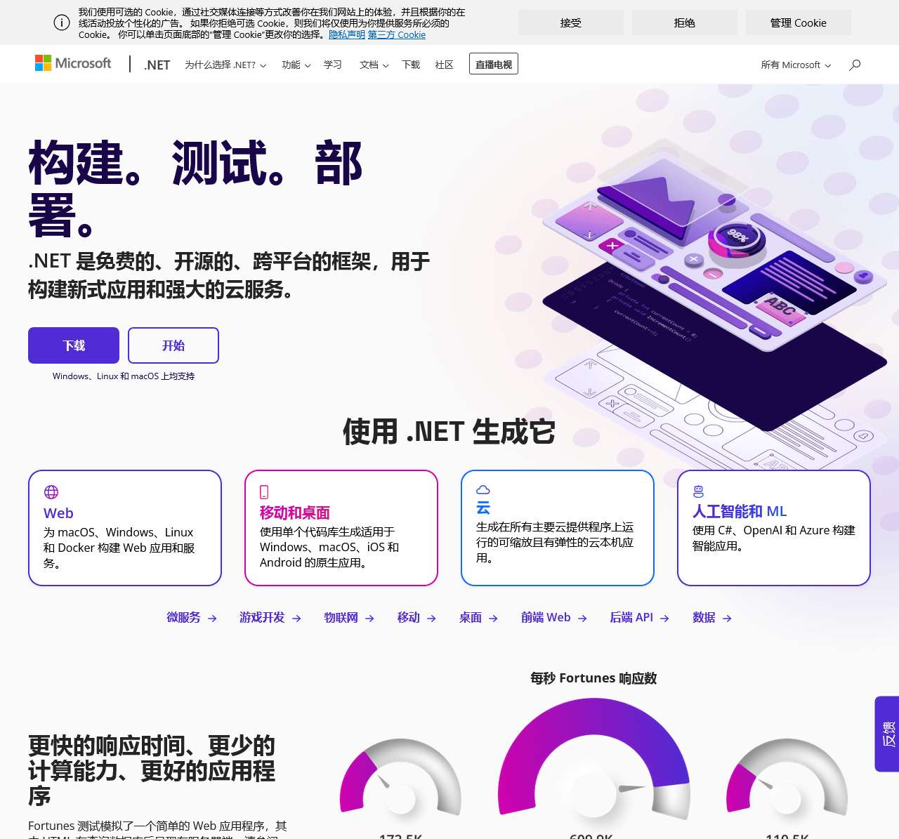 .NET 是一个开发人员平台,其中包含用于生成任何类型的应用(包括 Web、移动、桌面、游戏、IoT、云、微服务)的工具和库。