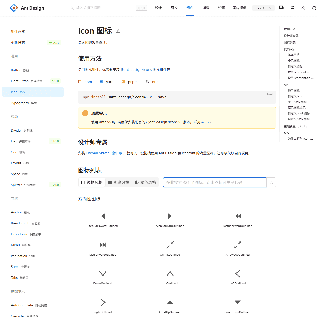 | 组件库和更新日志 | 包含大量UI组件,如Button按钮、Input输入框、Table、Modal对话框等,支持版本更新与日志,最新版本为v5.27.2。 |