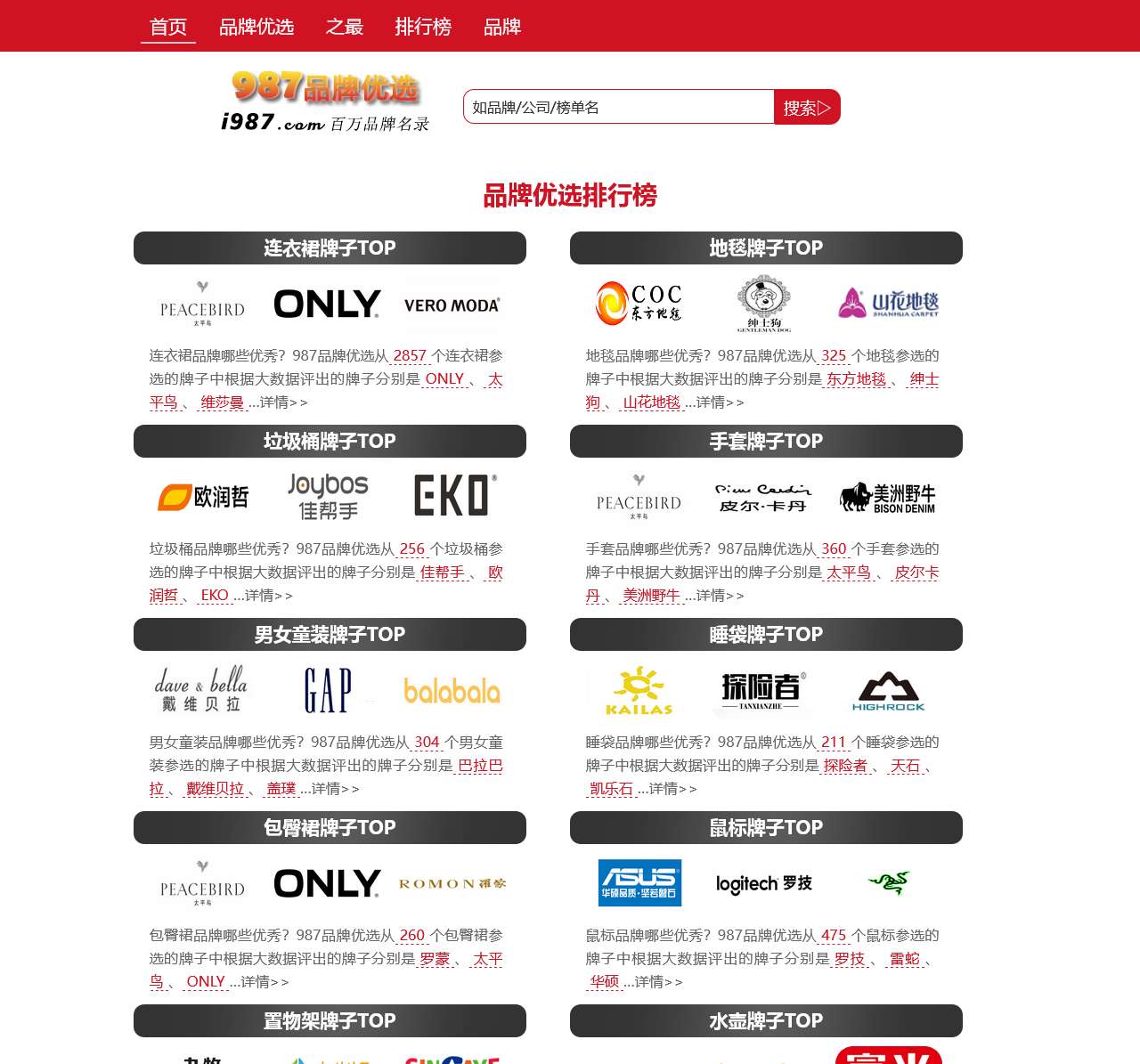 987品牌优选展示全球超百万个品牌指数、好评率、热门度以及行业十大排行榜。(i987.com)