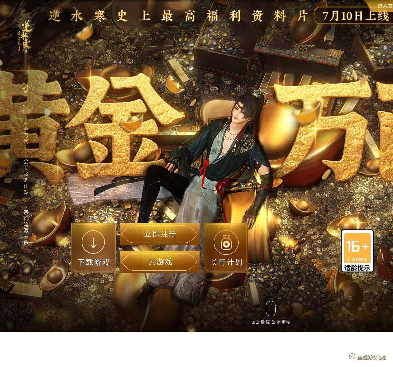 超亿元让利,走长青之路,逆水寒史上最高福利资料片黄金万两震撼上线!三形态流派云瑶,全新SLG玩法山河演武,新战场云崖问战,团本六道冥途,高福利玩法欧皇向前……海量地毯式更新,助您畅玩七周年!