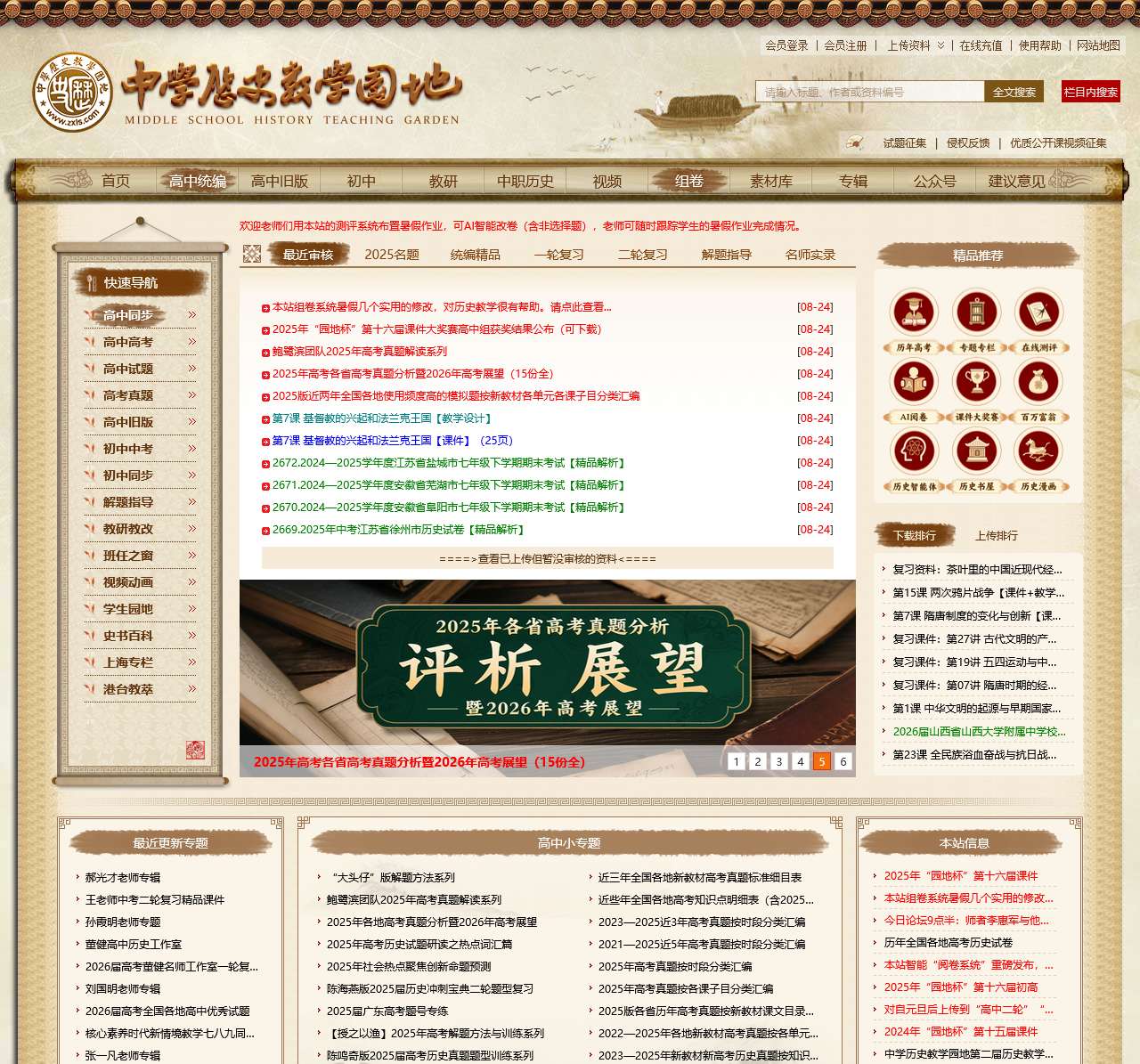 中学历史学科里面的龙头老大,无论是资料的更新速度还是全面程度都是一流的,以至于许多类似网站的资料都是从园地下载后再更新的。是历史老师的福音啊。。。