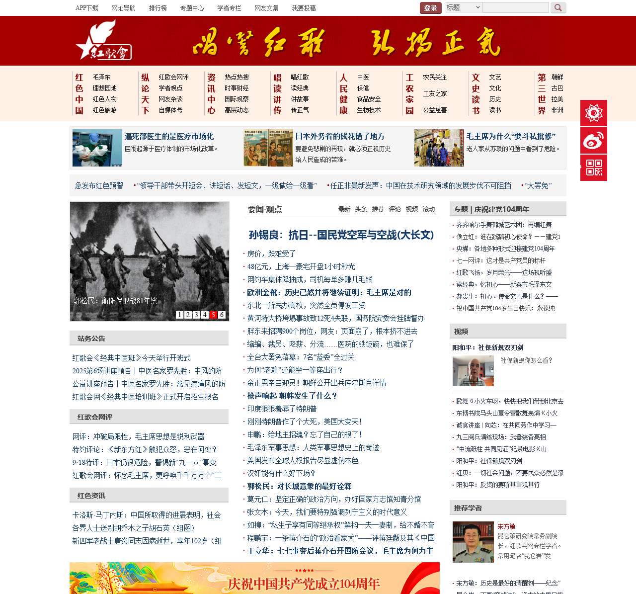 中国目前最具知名度和影响力的红色爱国网站之一。红歌会网基于一贯的人民立场,高举爱国主义旗帜,唱响红歌,弘扬正气,宣传红色文化,反映老百姓的呼声,推动社会公平正义,维护国家和民族根本利益。