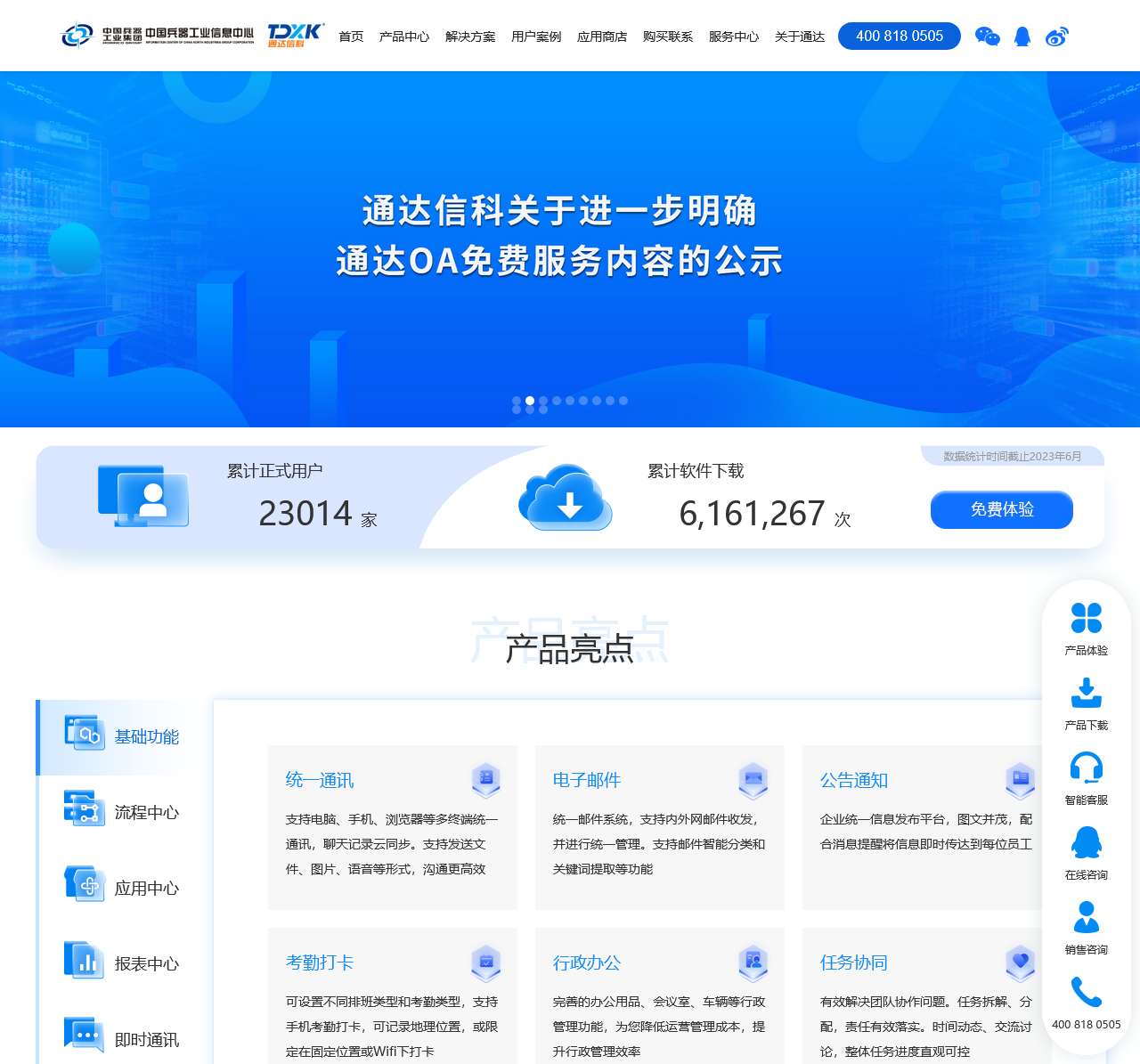 通达OA系统代表了协同OA的先进理念,16年研发铸就成熟OA产品,协同OA软件行业唯一央企团队研发,多次摘取国内OA软件金奖,拥有2万多家正式用户,8万多家免费版用户,超过500万终端用户