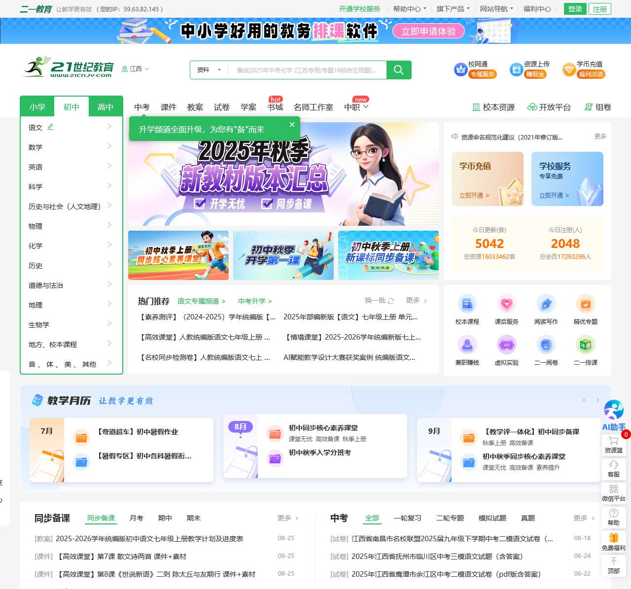 国内排名前列的中小学教育资源网,提供全国中小学各版本教材的课件教案学案备课素材试卷练习等资源下载。资源多、时效强、质量高,是中小学老师学生们的最佳选择