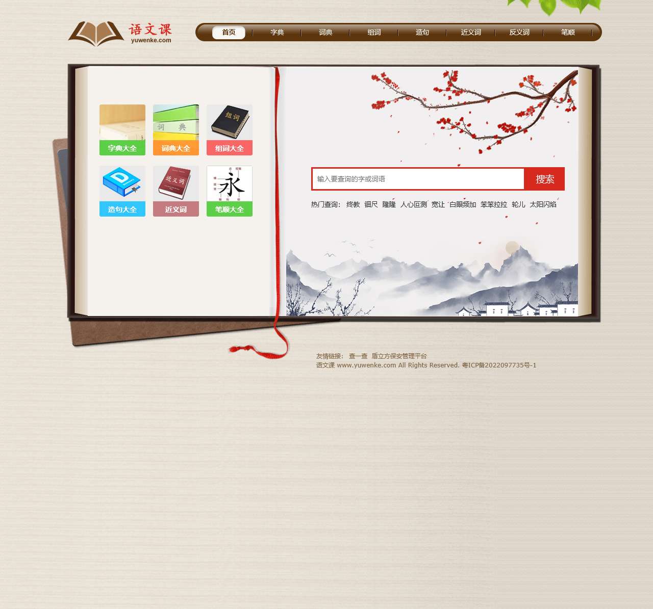 语文课(yuwenke.com)是一家专业学习语文的平台,提供汉字解释、词义、组词、造句、近义词、反义词、笔顺、古诗词等知识查询,是您学习汉语必备工具。