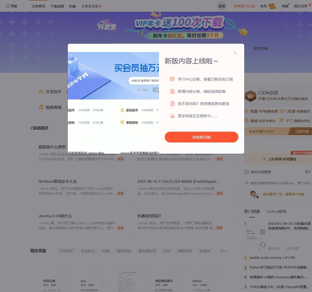 CSDN下载平台为开发者提供海量免费技术资源,包括代码库、实战教程、正版电子书及开发工具。VIP会员享千门课程专享价、1000+精选专栏及VIP文章免费特权,日均服务10万+开发者。立即入驻,加速技术成长!